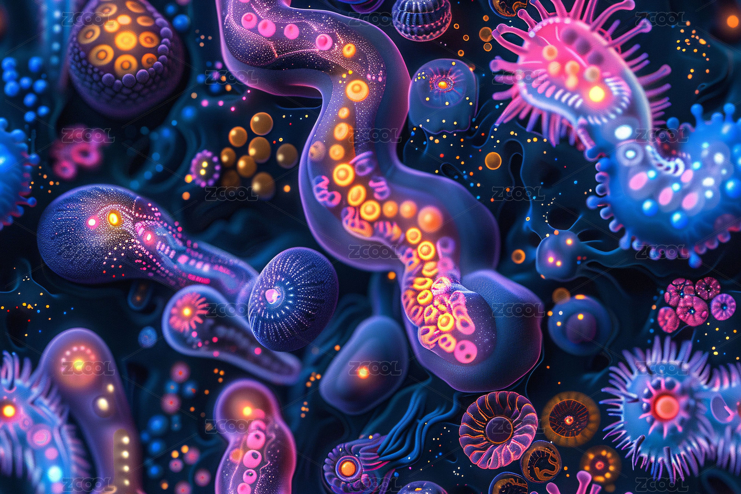 显微镜下细菌病毒特写海洋生物科学概念插图