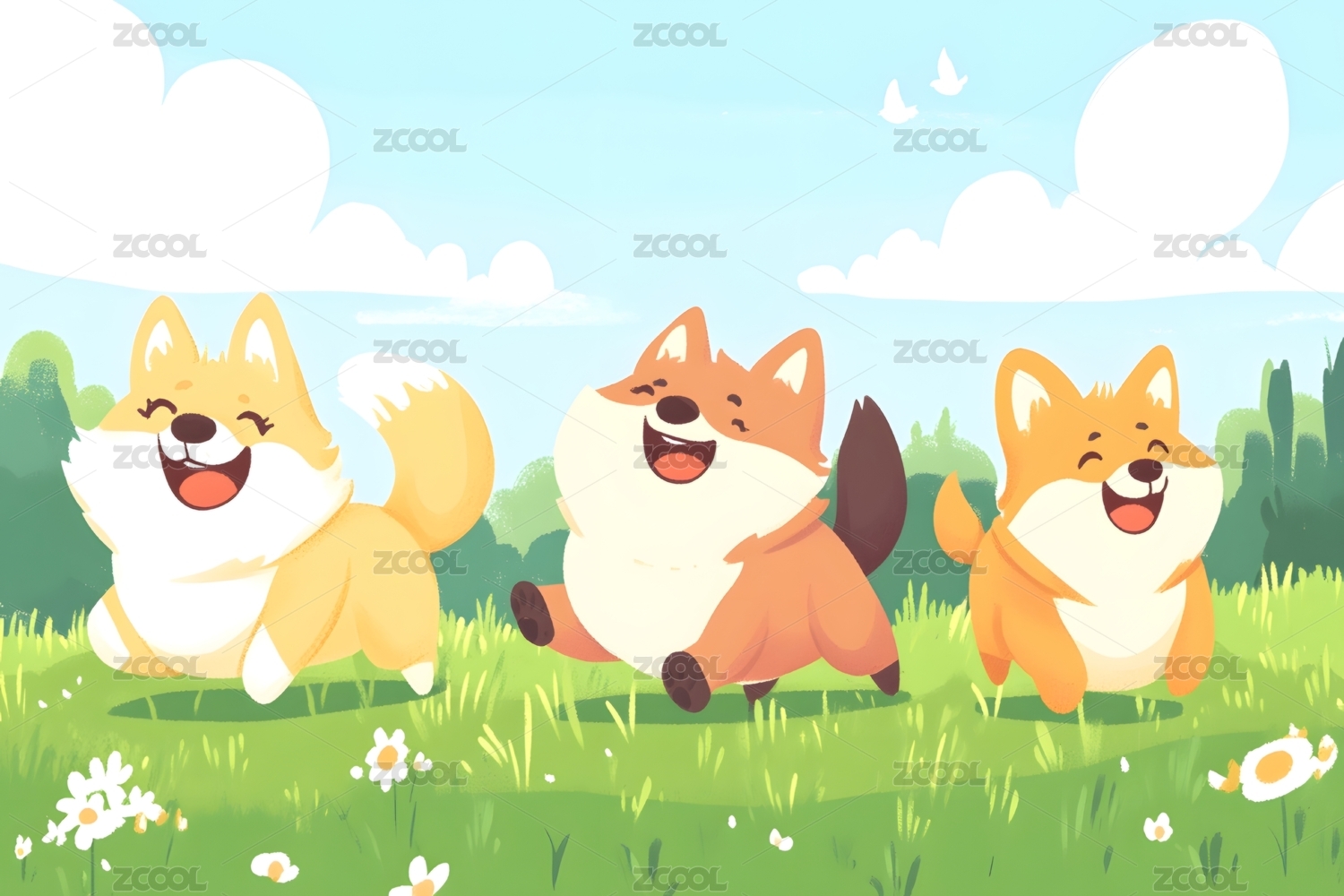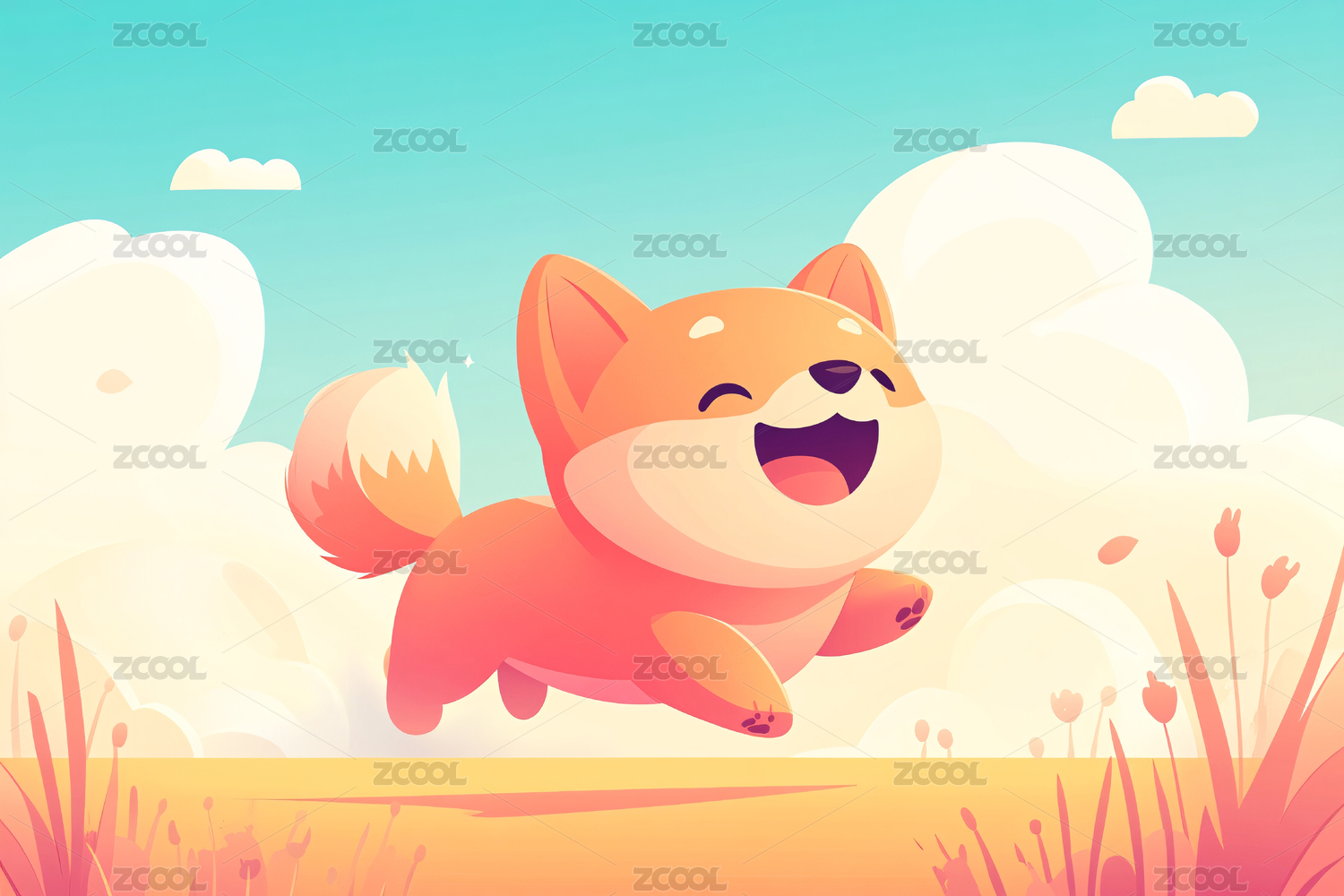卡通可爱柴犬插画