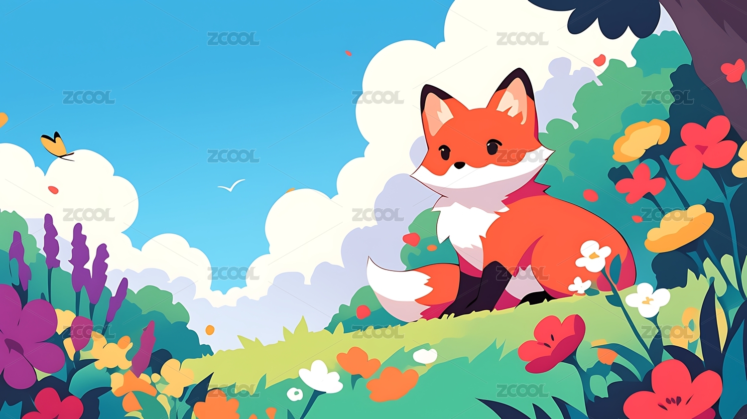 扁平可爱小狐狸绘本插画