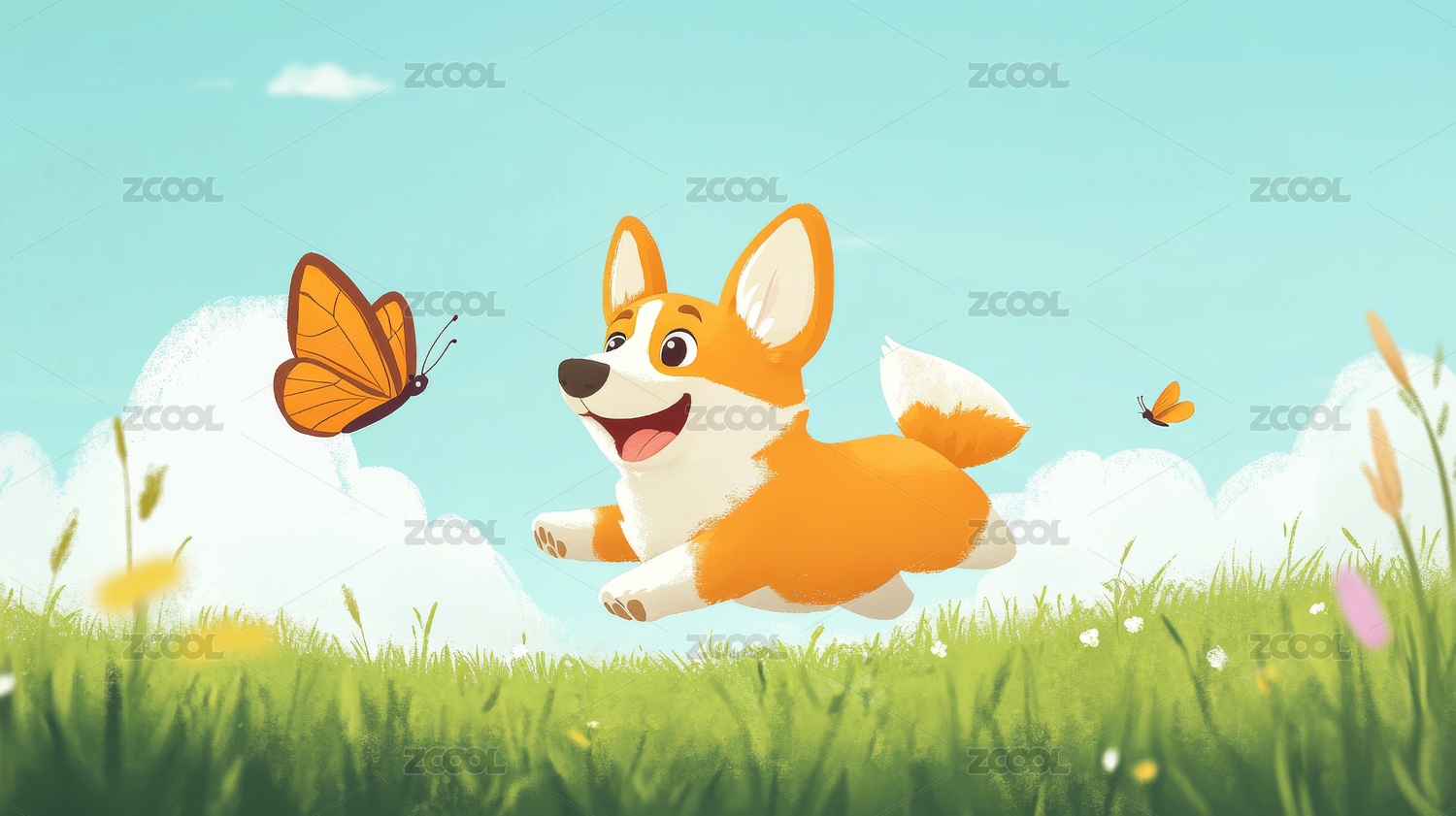 草地上一只可爱奔跑的小狗背景