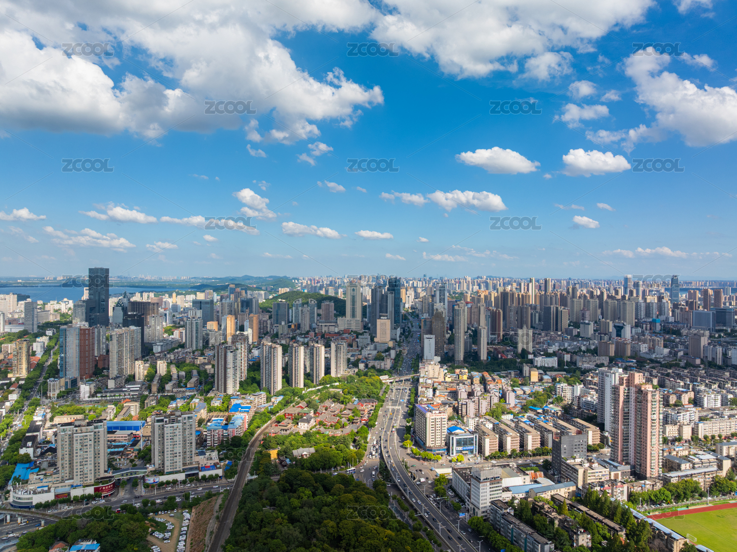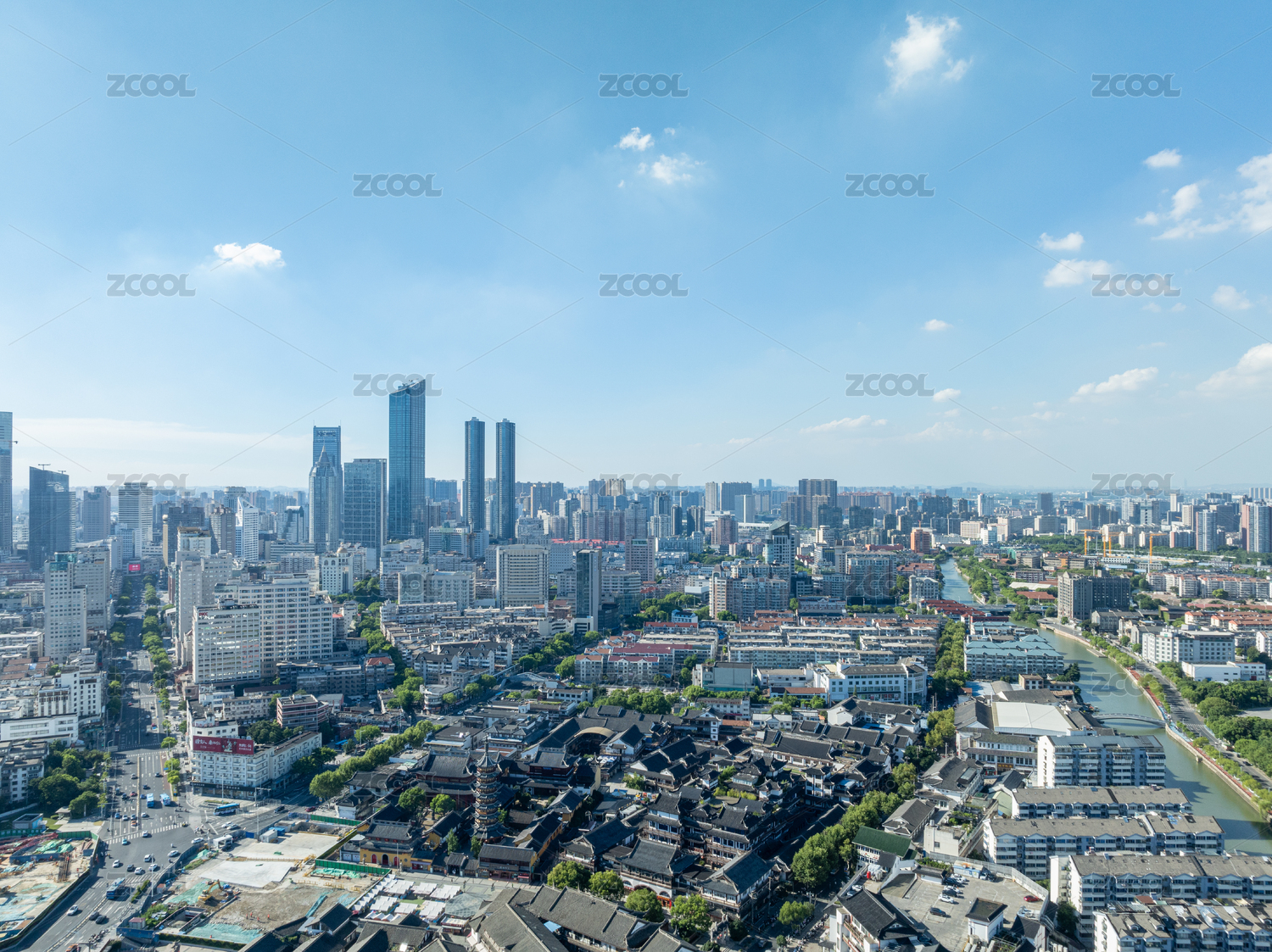 江苏无锡市城市地标建筑市中心蓝天白云风光
