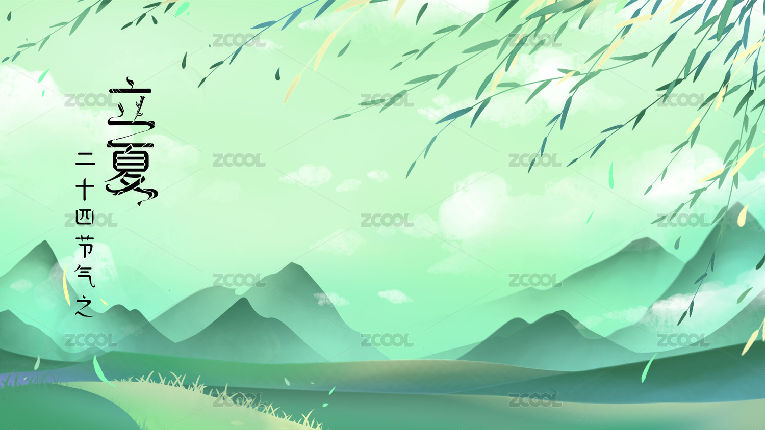 绿色系简约卡通风格立夏二十四节气立夏海报