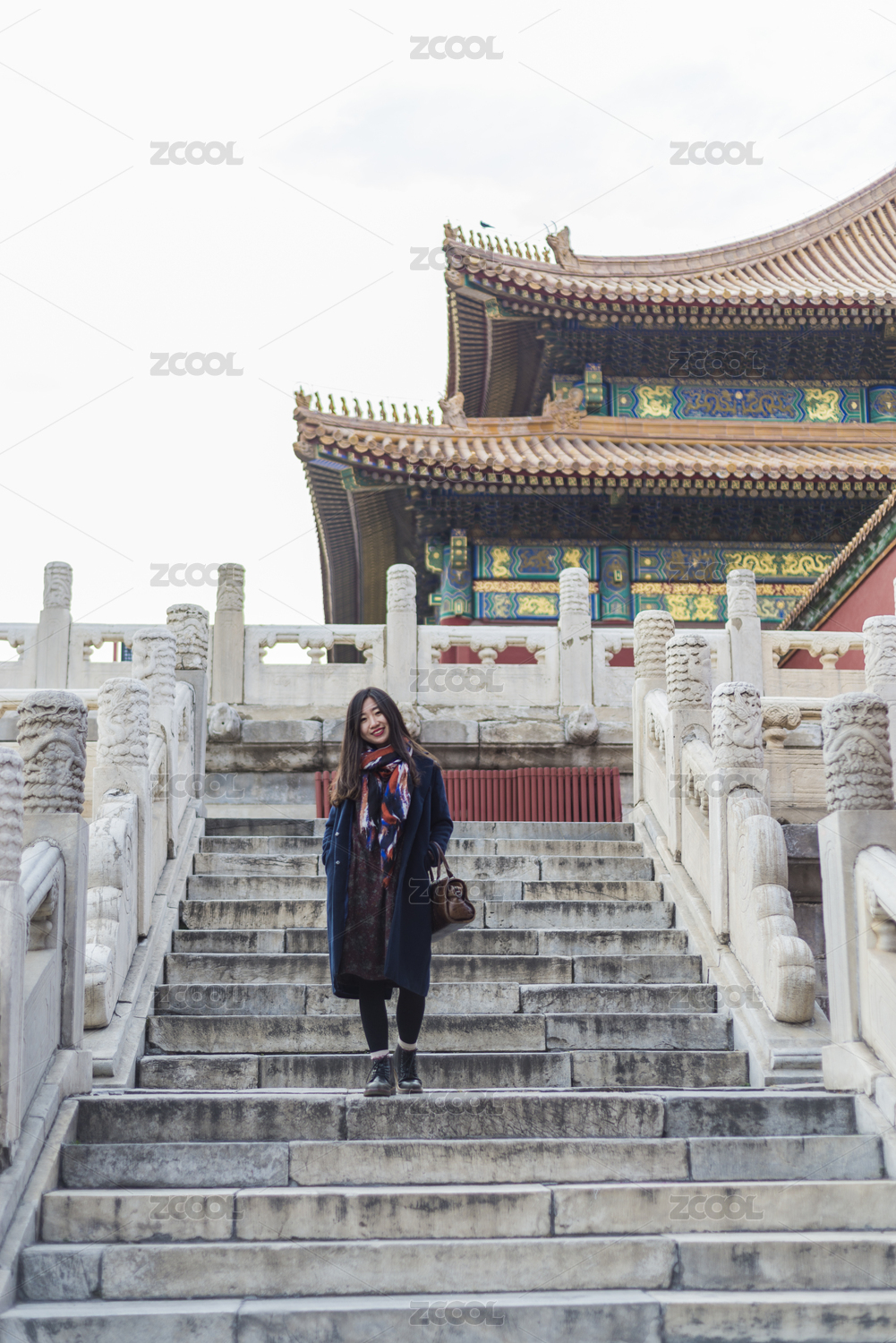 初冬游览北京故宫博物院的亚裔女性