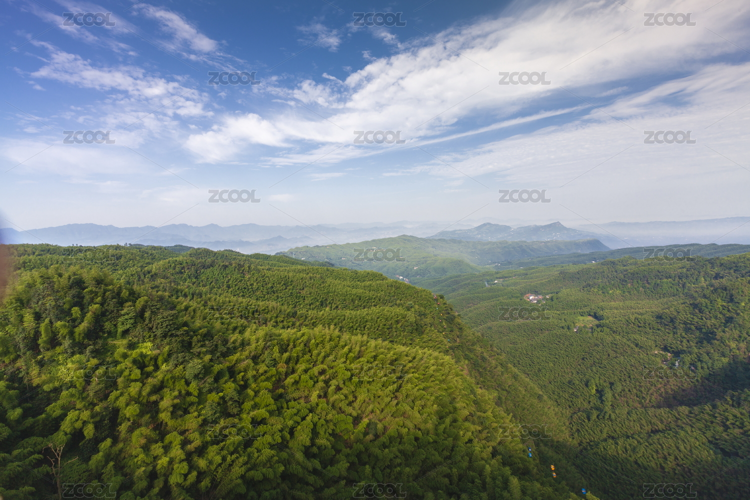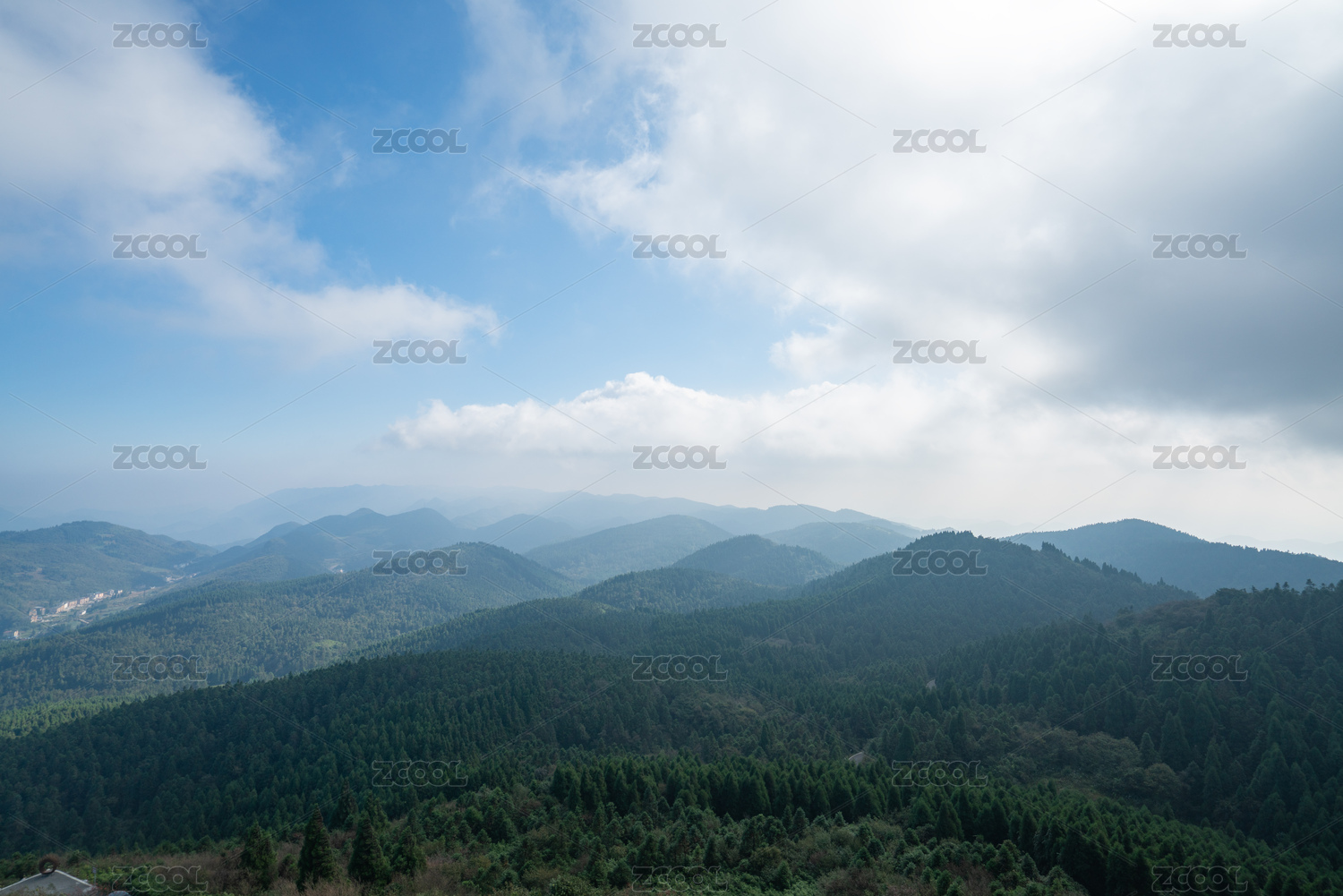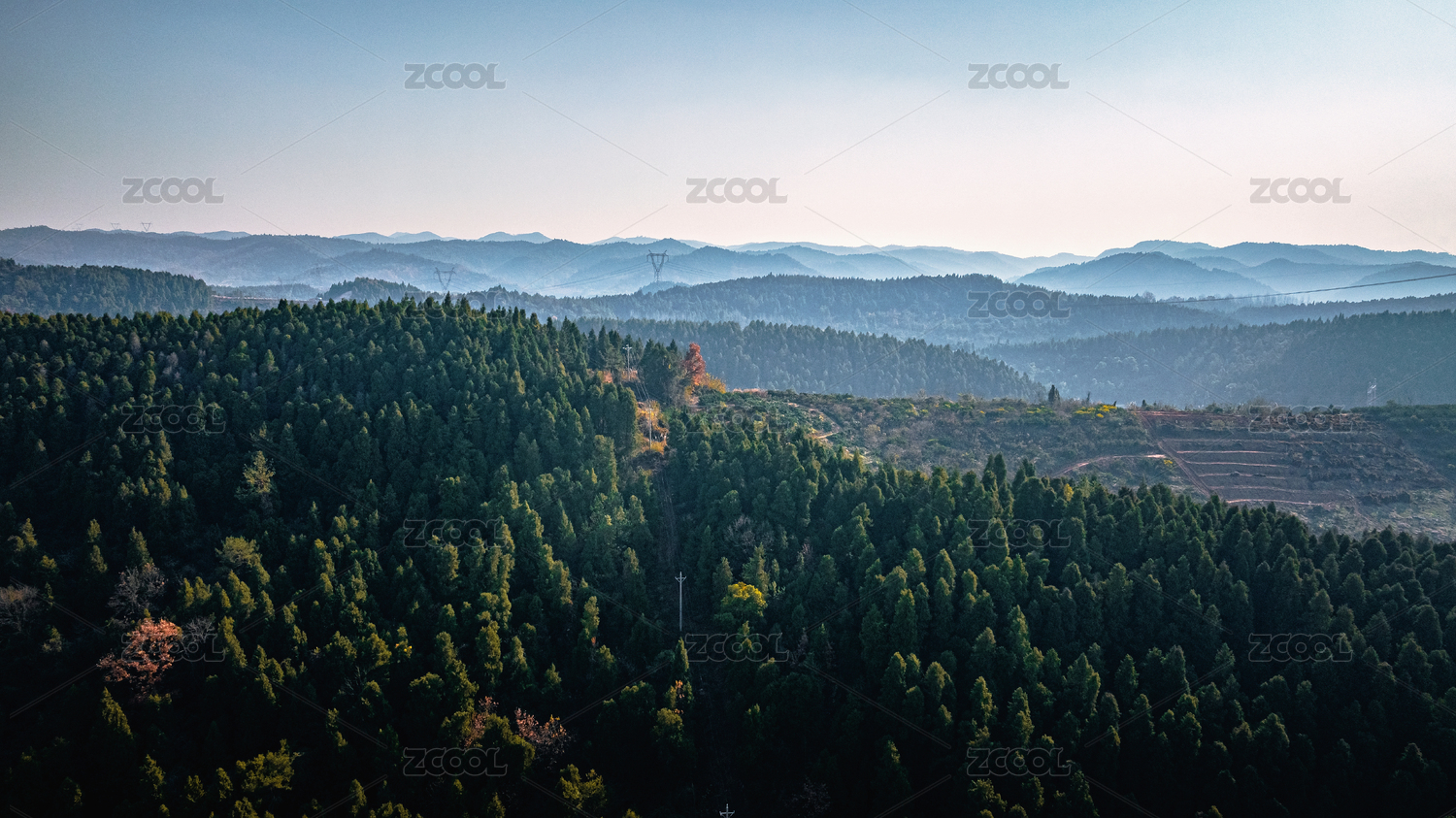 蓝天下起伏的山峦/杉树林场林业背景素材