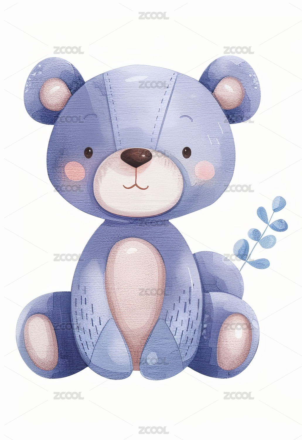 唯美可爱玩具熊戴粉红色蝴蝶结蓝色衣服布