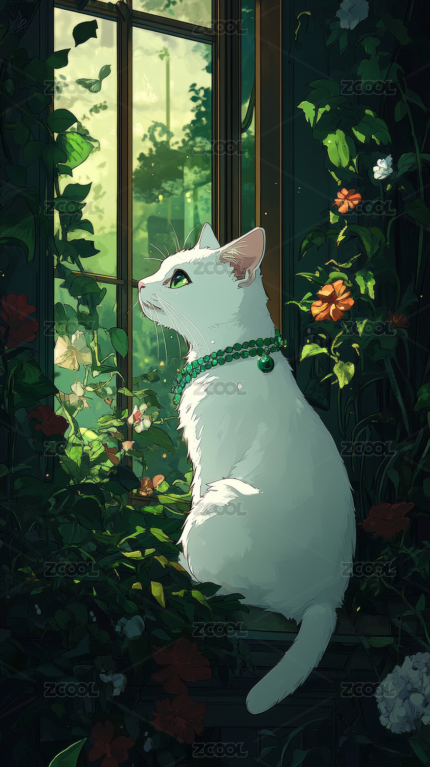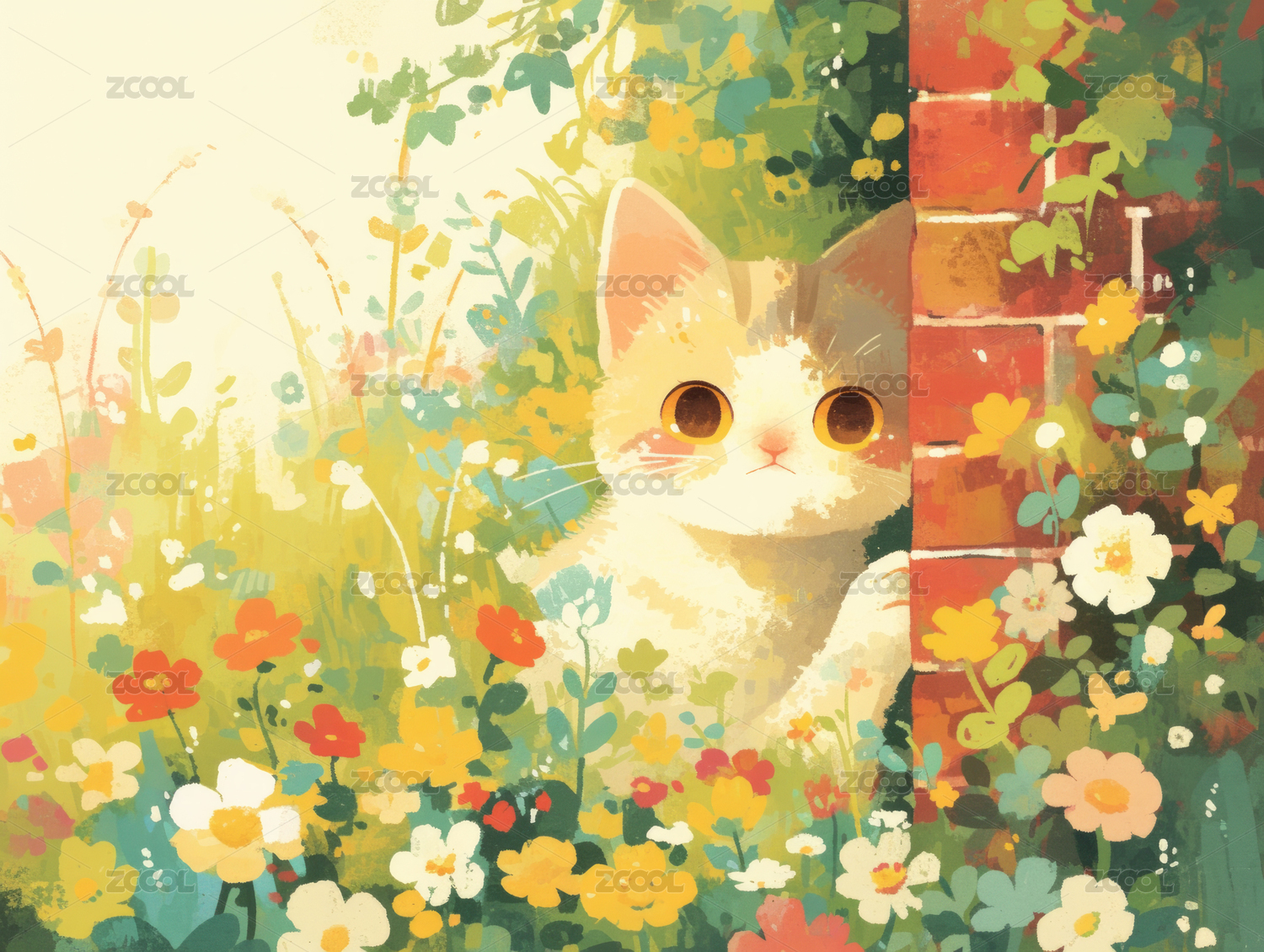花店,白色,猫,鲜花,花瓶,彩色,花架,下哈话,插花,插画