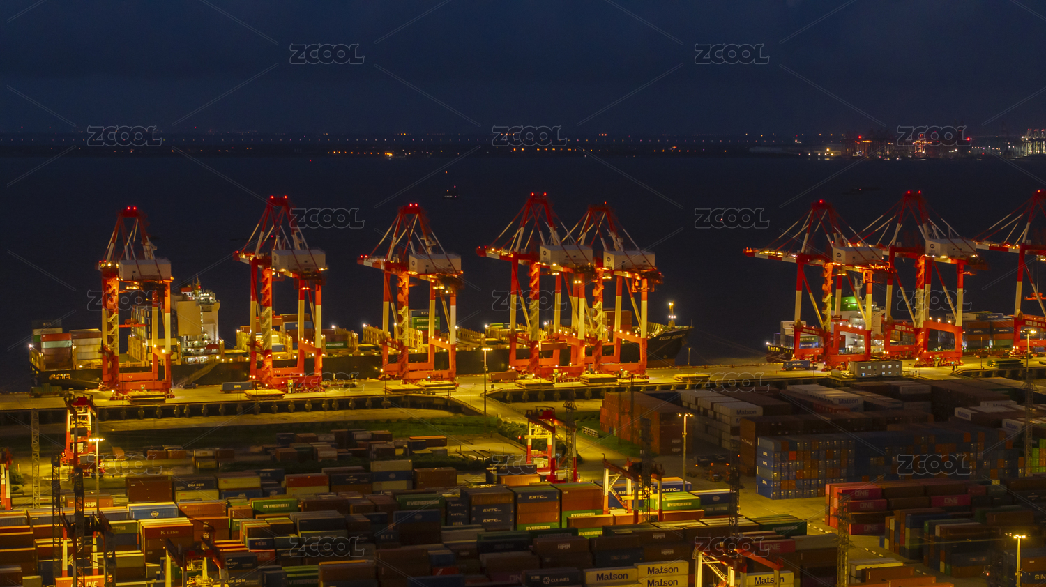 营口,码头,集装箱港口,吊装,吊车,轮船,货船,夜景,装卸,运输