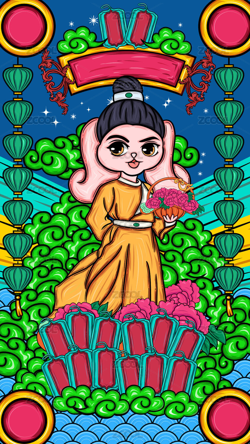 手绘卡通国潮年画娃娃设计