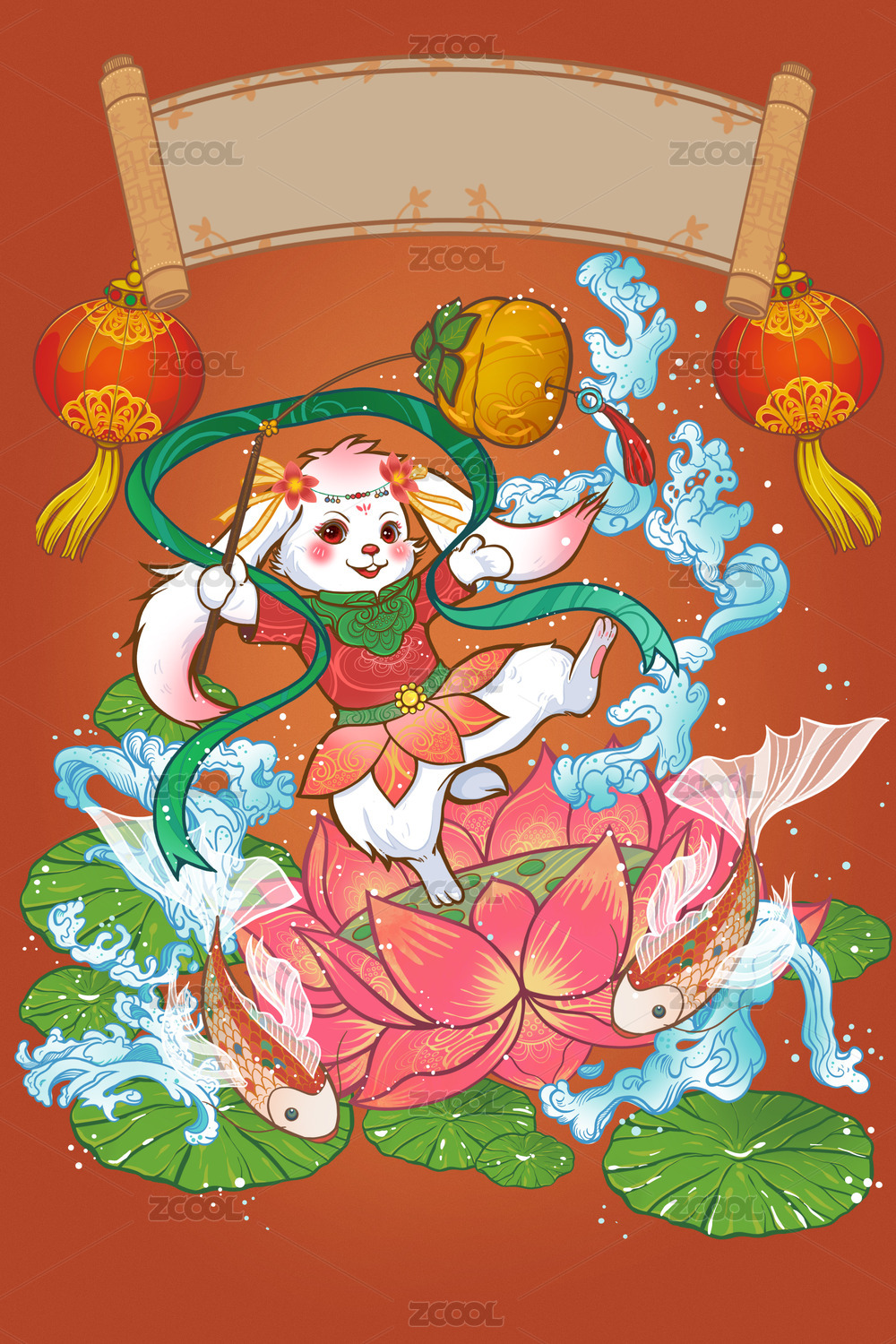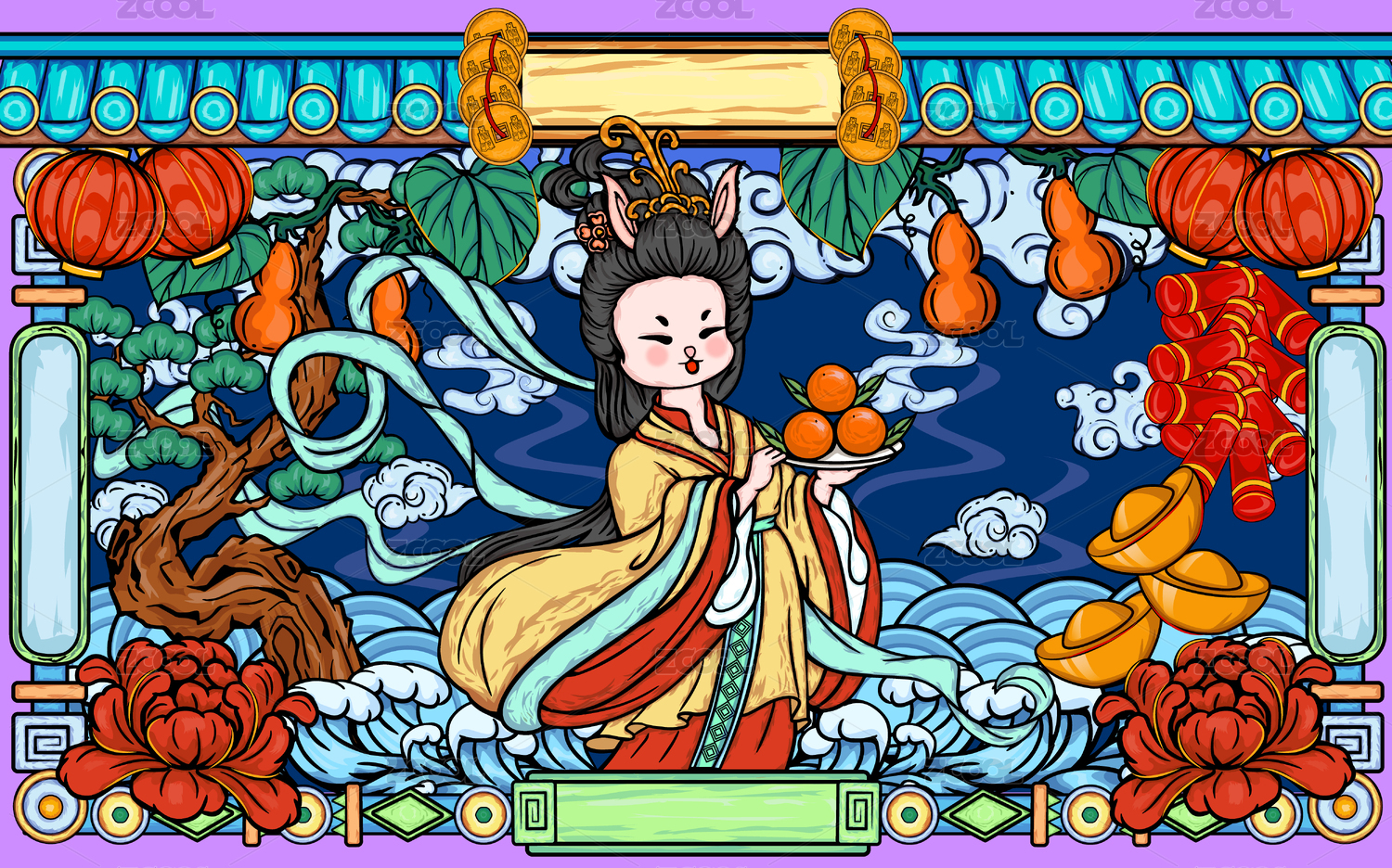 兔年形象国潮插画