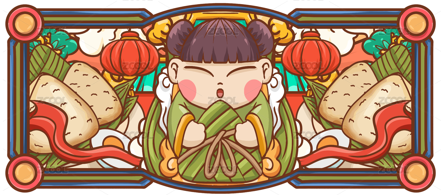原创手绘卡通端午节美食插画海报素材