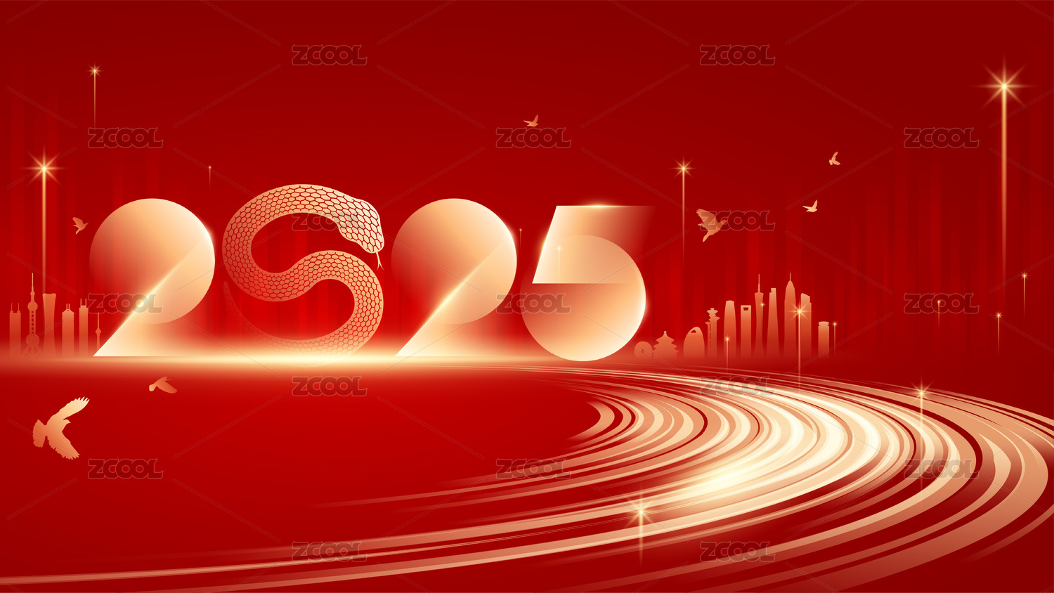 2025蛇年新年喜庆曲线星光点点贵族红色