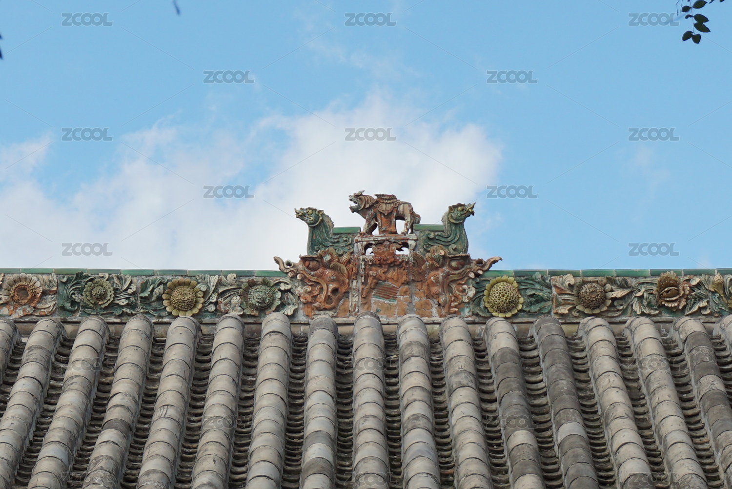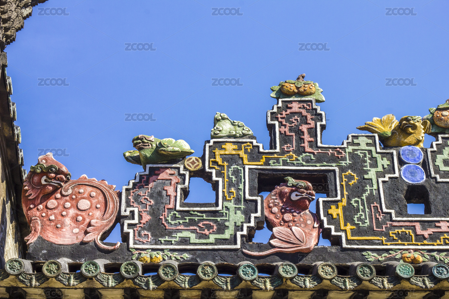 中国广州陈家祠岭南建筑屋顶灰塑陶塑