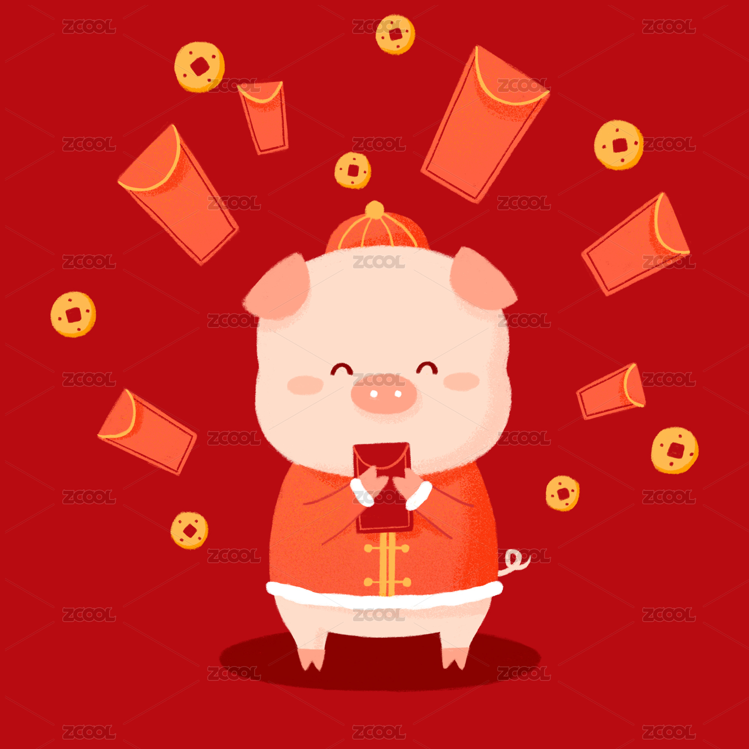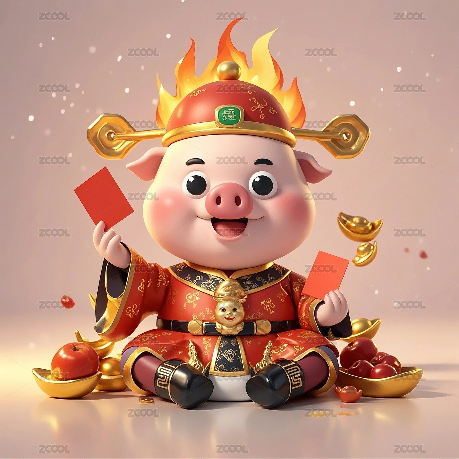 猪,财神,元宝,铜钱,钱,钱币,货币,财神爷,猪年,新年