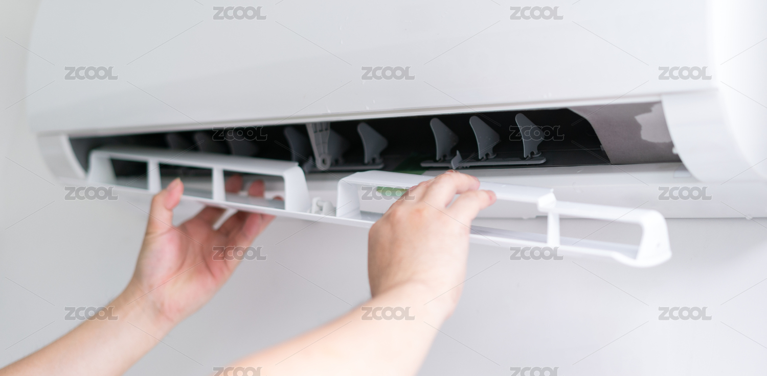 手拿着抹布在擦拭空调