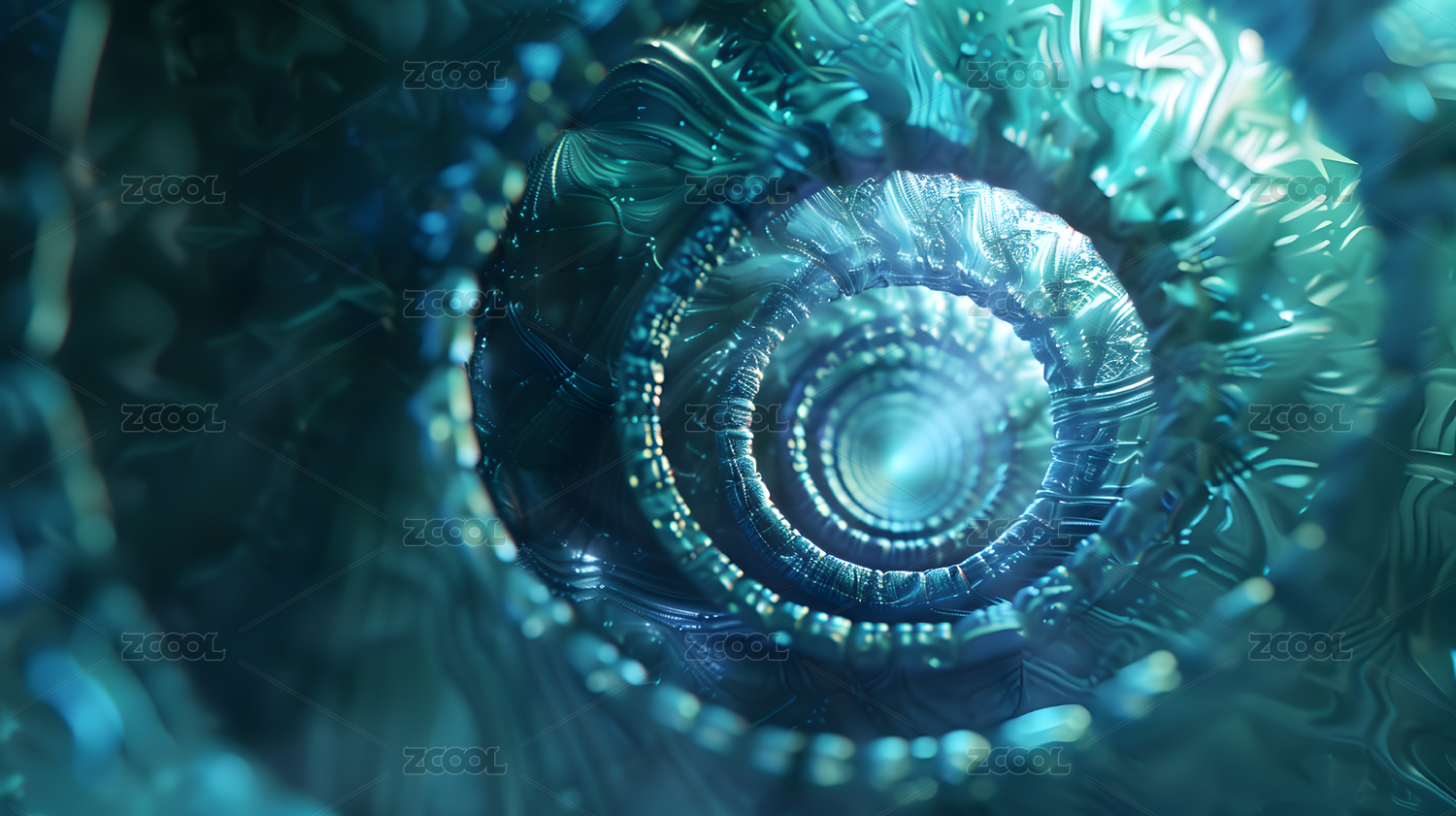 数字技术蓝光玻璃漩涡几何水平海报网页背景