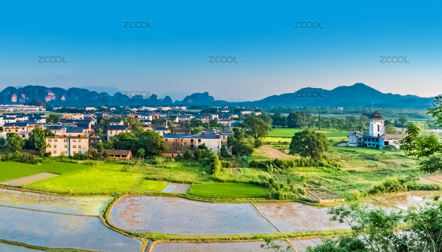航拍中国广西桂林山水会仙玻璃田日出风光