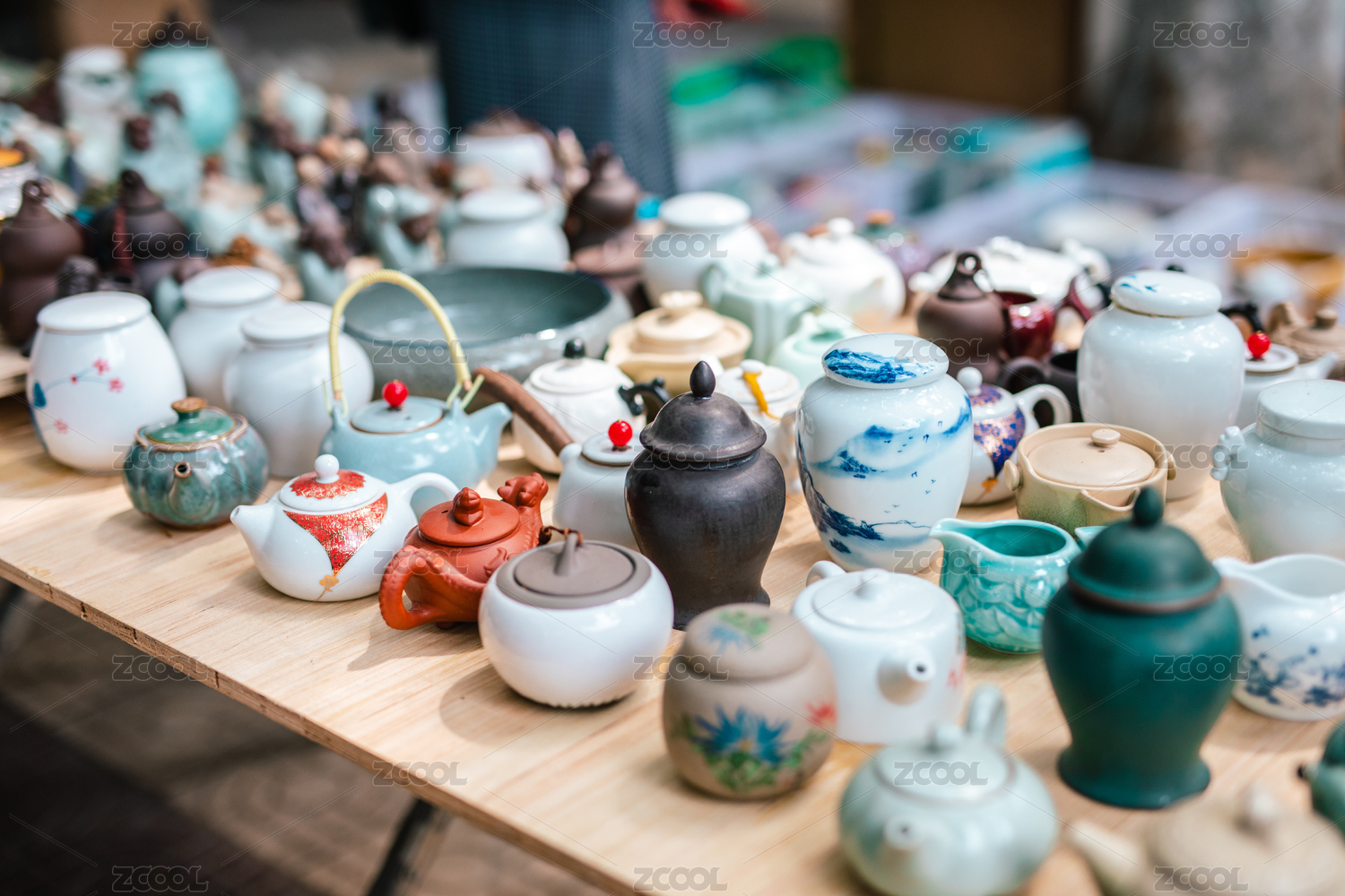 市场摊位出售的陶器
