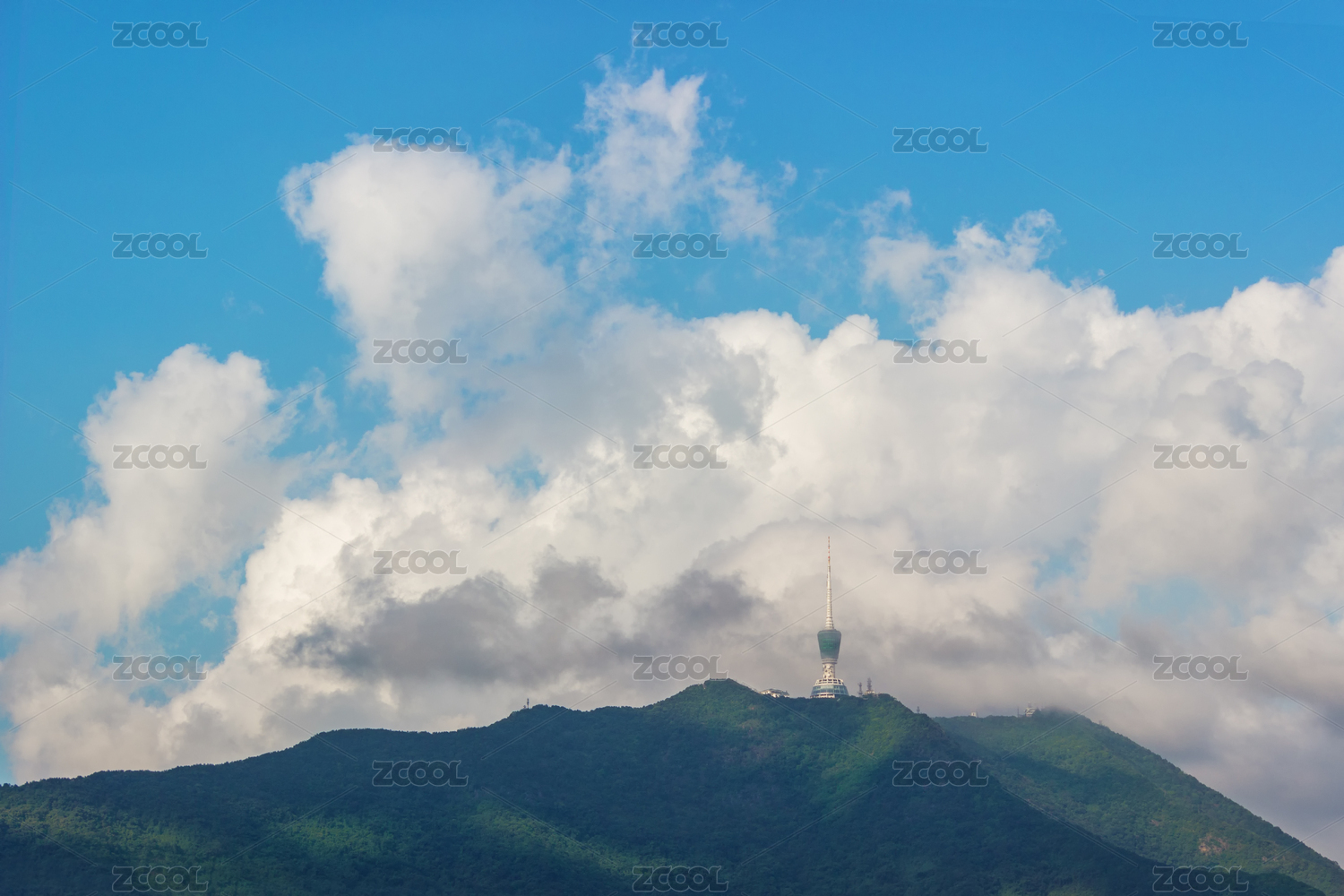 山,山脉,森林,树林,茂密,蓝天,白云,移动,基站,5G