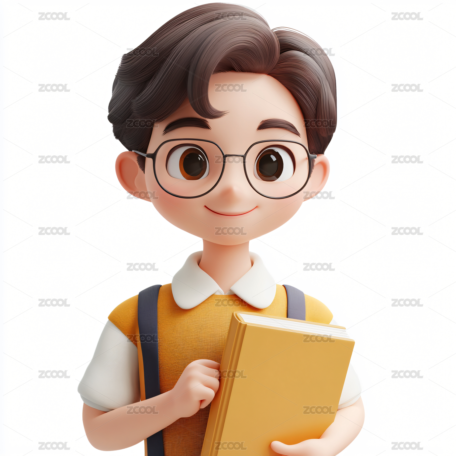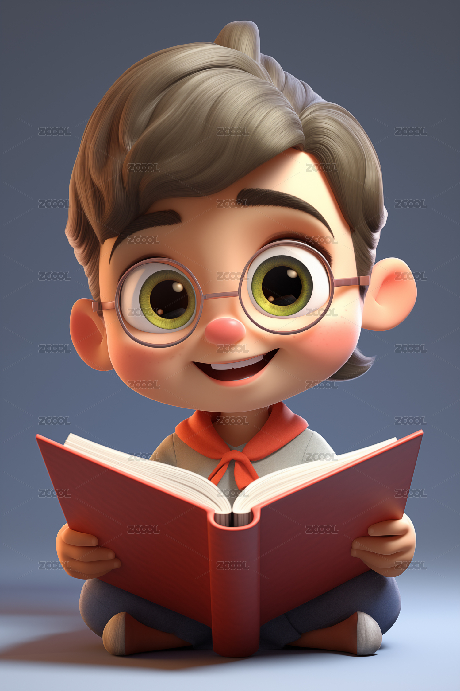 3D可爱黄色毛衣背带戴眼镜手捧书本小男孩