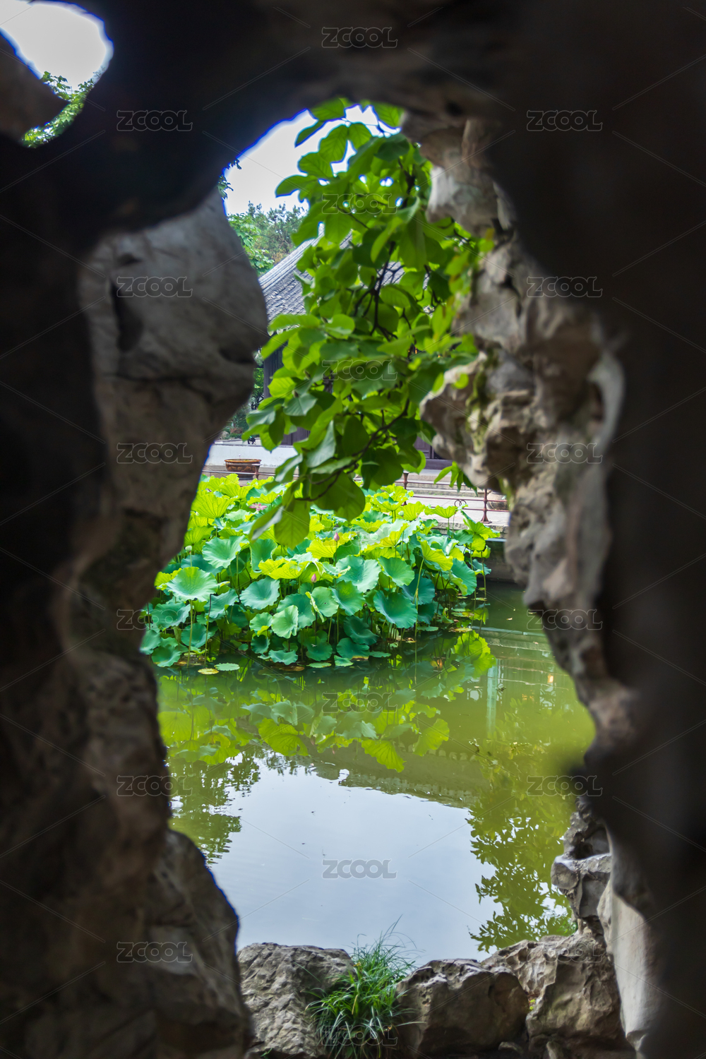池塘边安静的古典园林