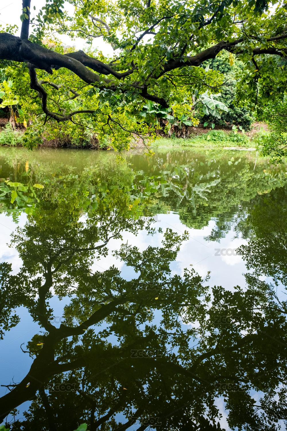 公园里的景色水草倒影