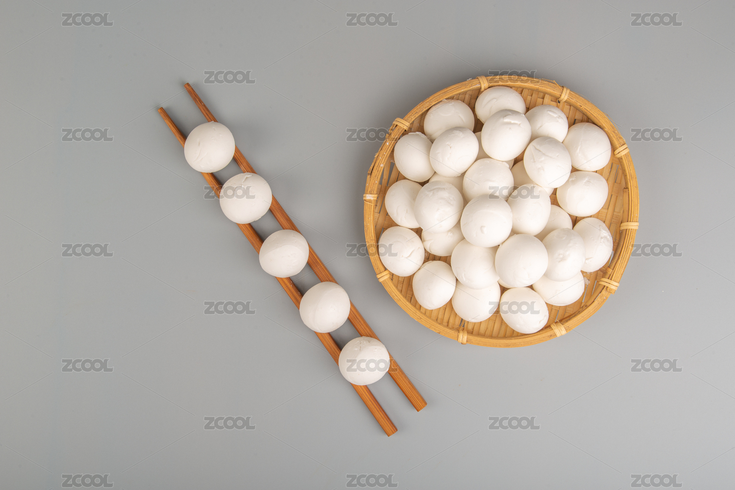 红色背景下的汤匙和碗里的汤圆特写镜头