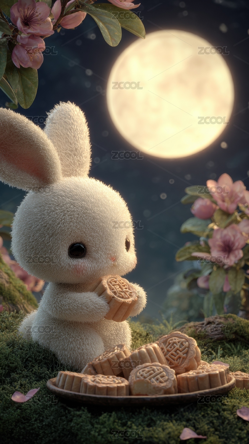 中秋,节日,兔子,玉兔,月饼,卡通,3D