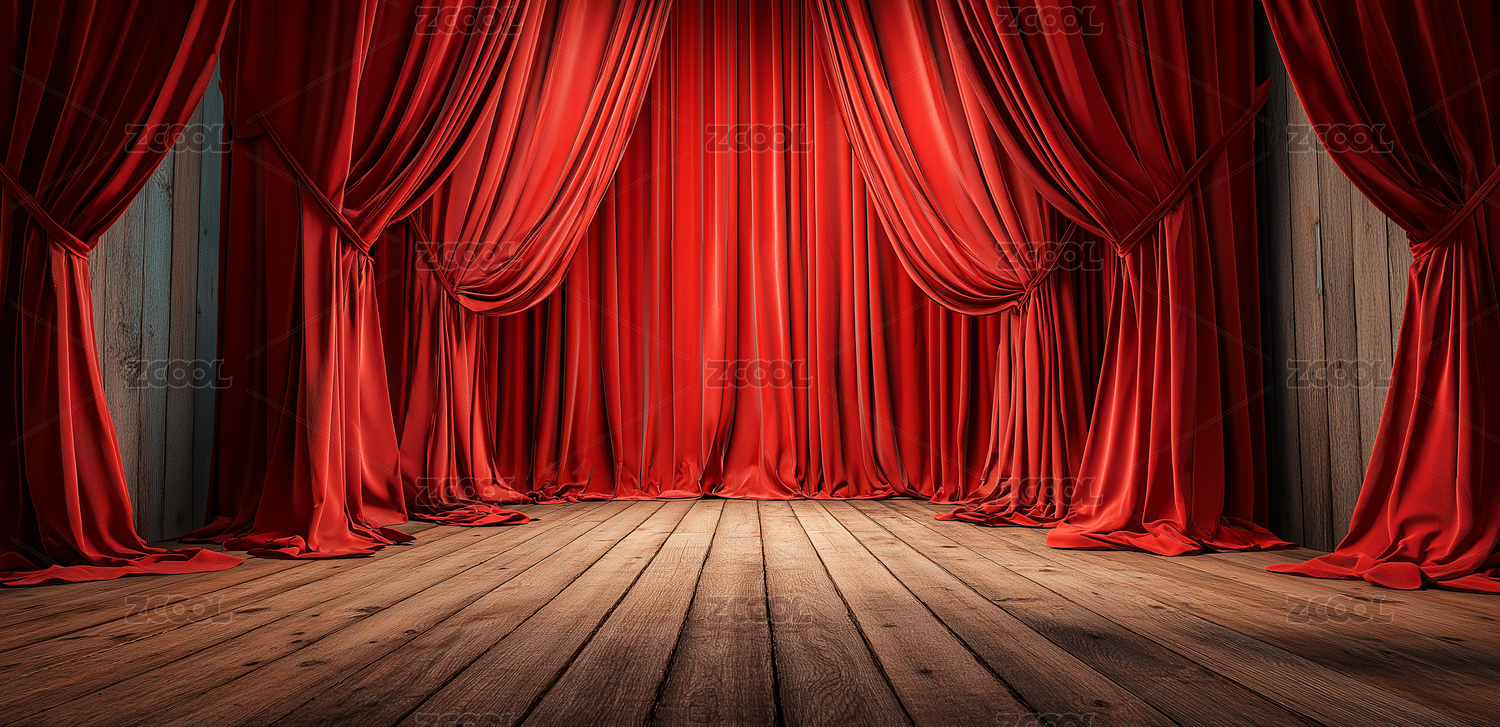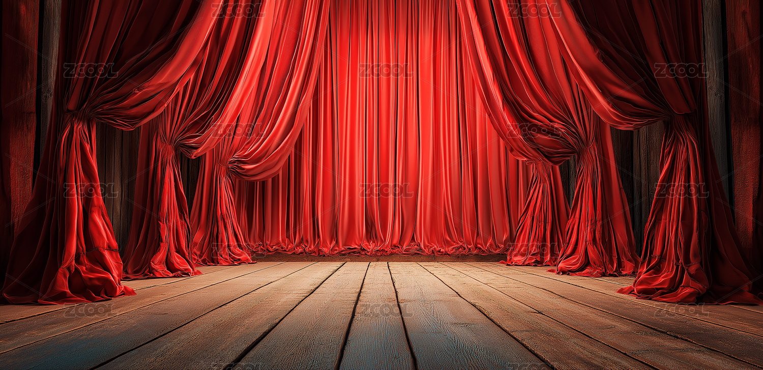 红色窗帘,舞台,木地板,柱子,剧院,表演,戏剧,天鹅绒,金色装饰,华丽