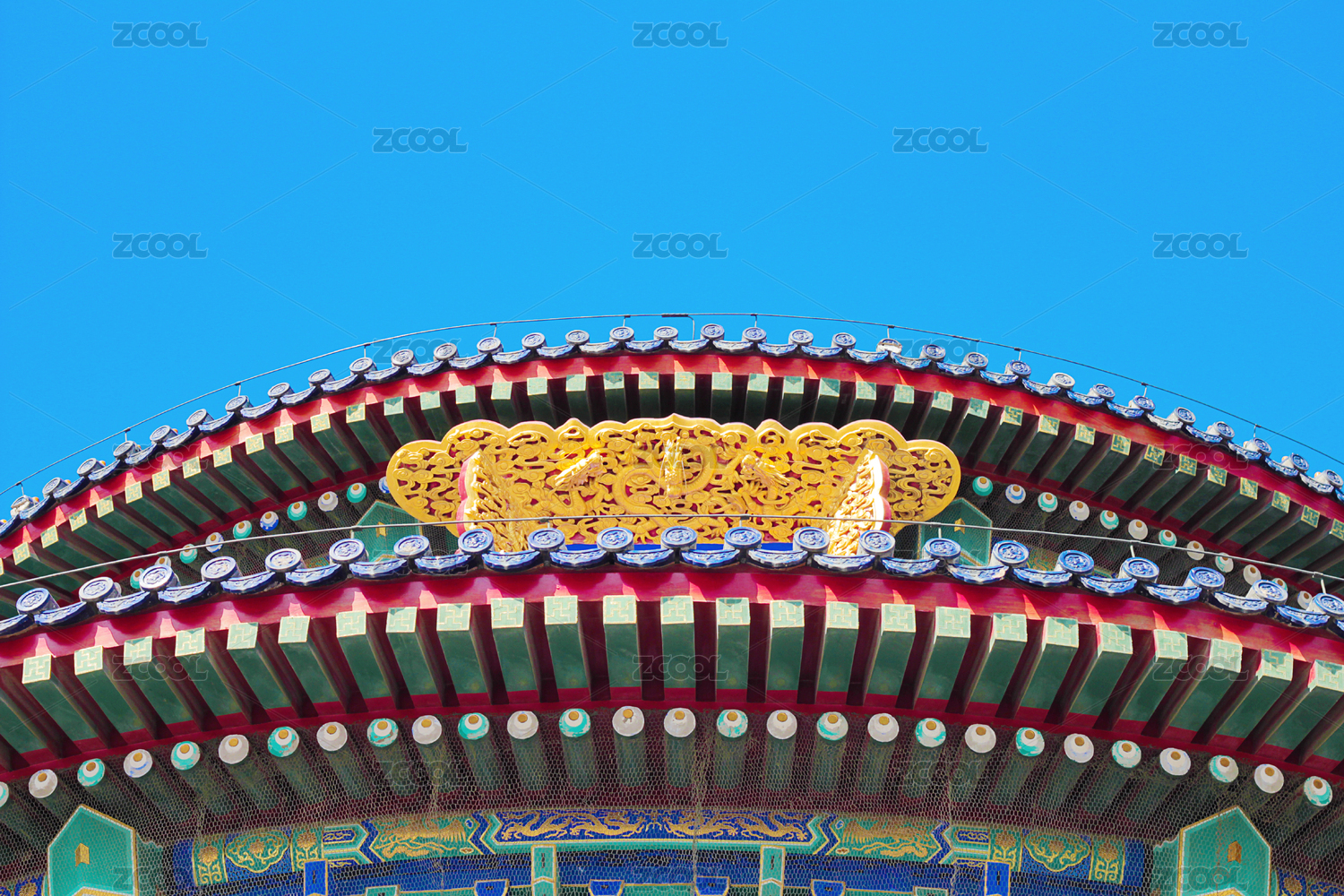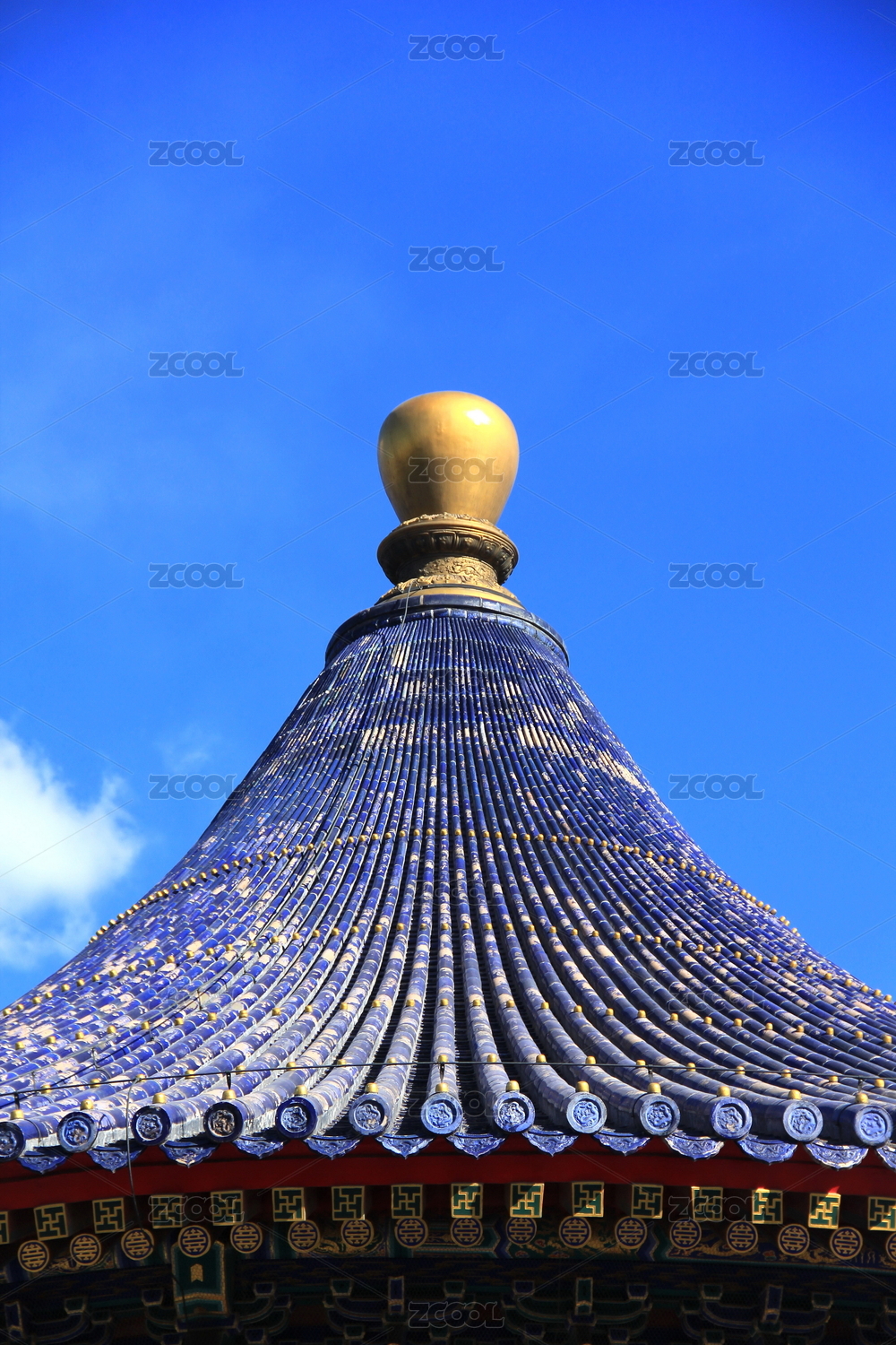 清晨阳光下的天坛皇穹宇蓝色屋顶特写