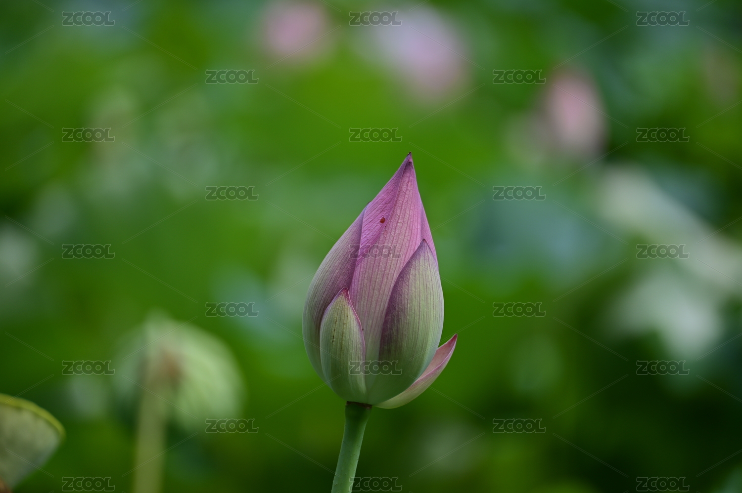 夏天待开的粉红色的荷花绿色的荷叶花骨朵