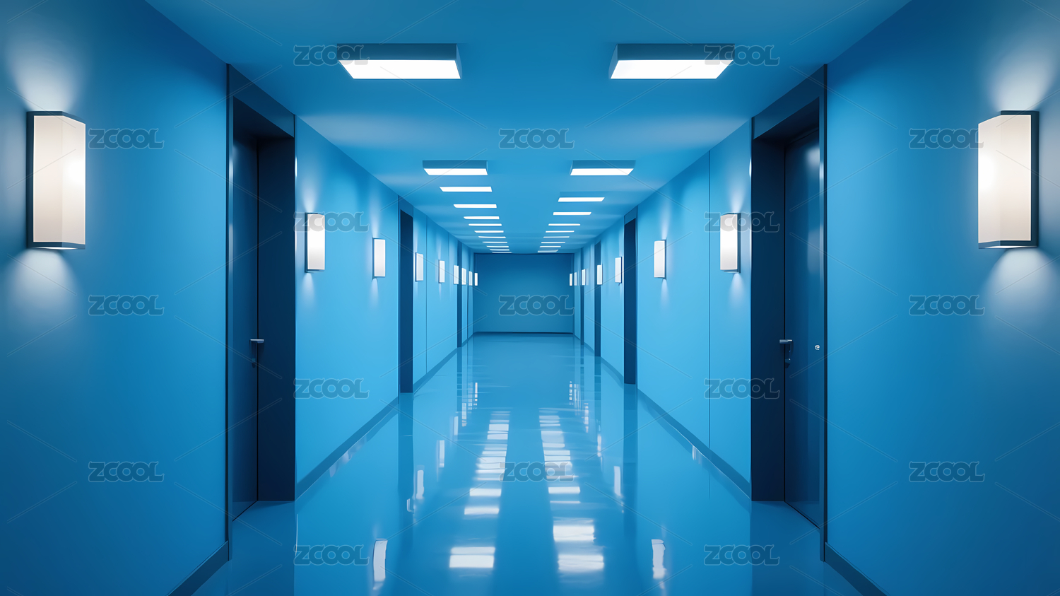 空旷,走廊,光线,明亮,地板,反射,白色,墙壁,门,现代