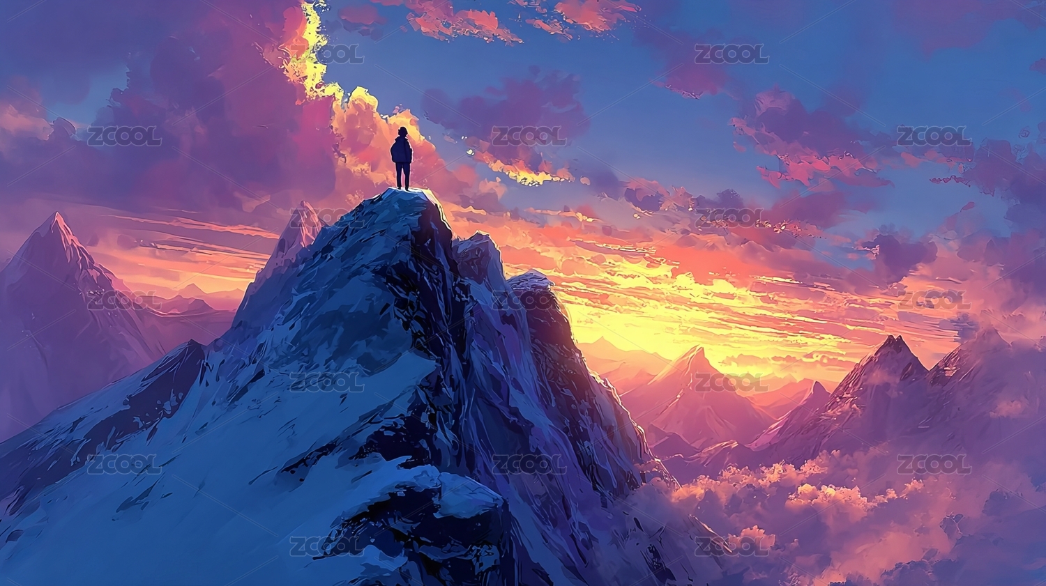 人,山峰,云层,光线,天空,未来,探索,站立,高山,云端