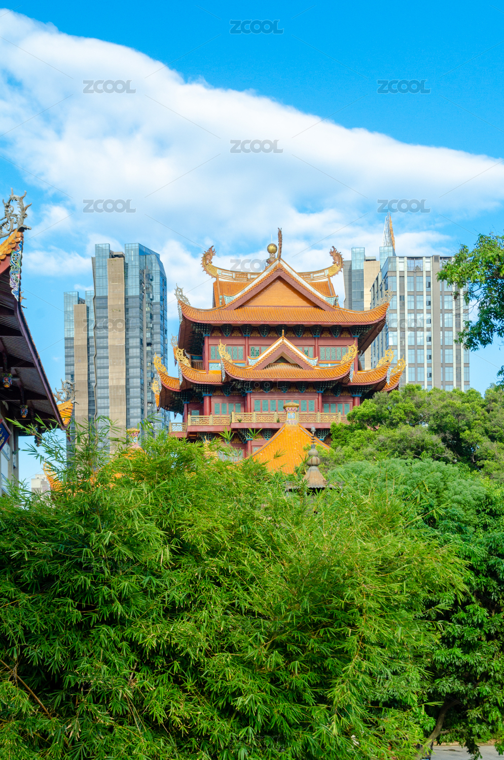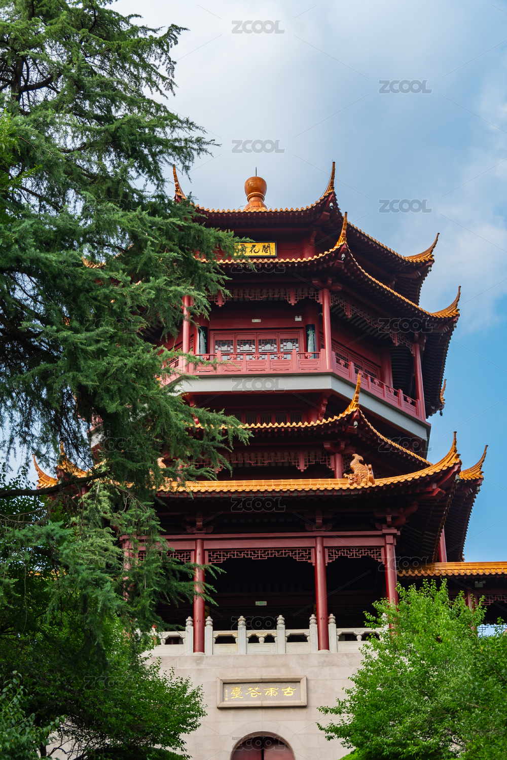 福建省福州西禅古寺的古阁楼和旁边的高楼