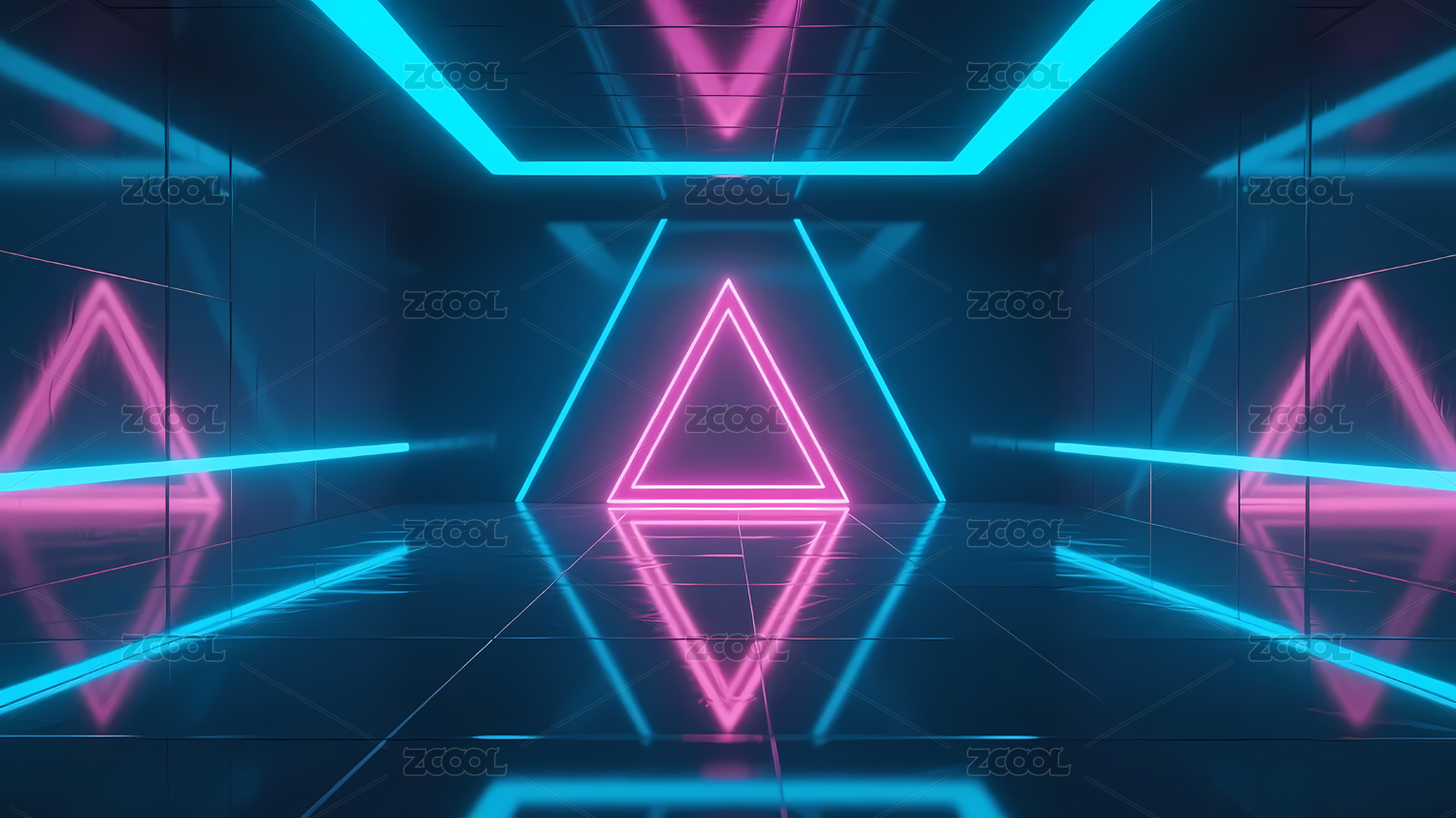 未来,科技,走廊,蓝色,紫色,霓虹灯,光线,几何,形状,三维