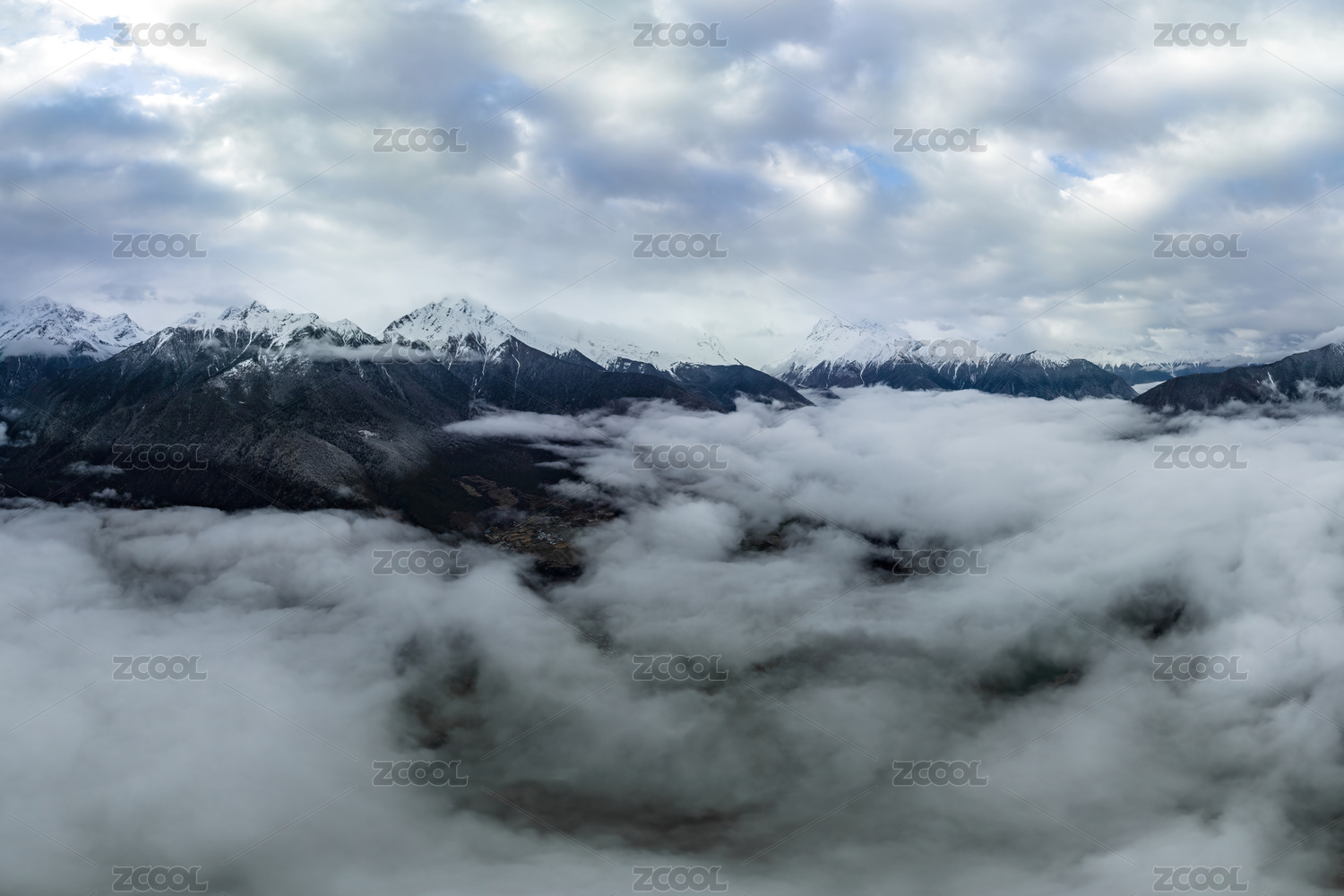 中国四川甘孜折多山垭口的云海雪山