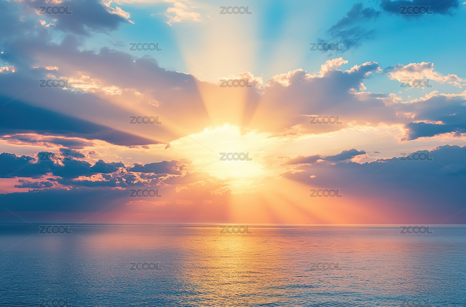 金色夕阳穿透云层的壮丽景象