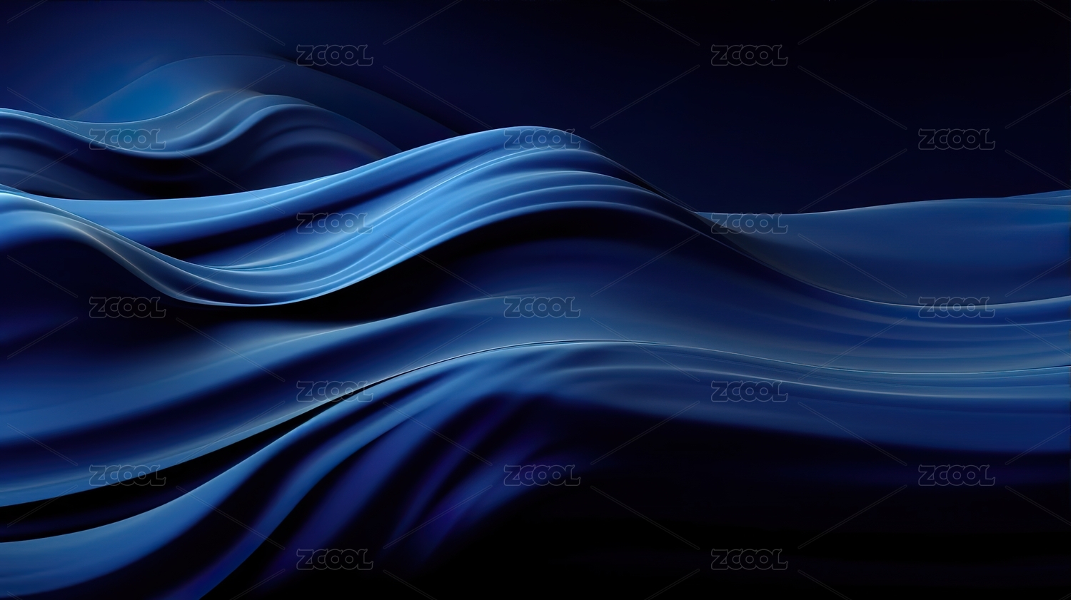 深蓝色丝绸般波浪抽象背景图