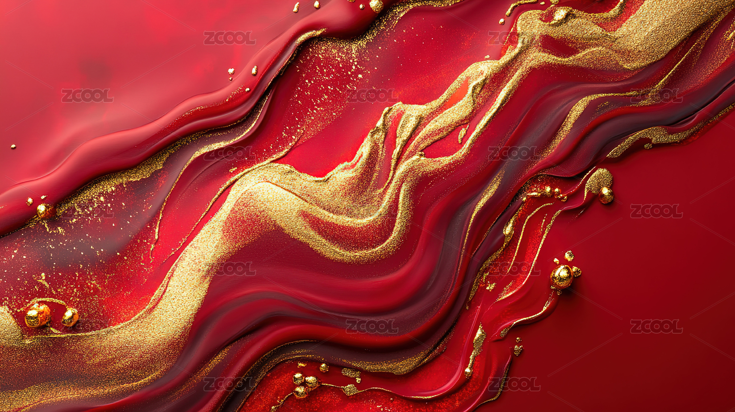红色背景中金色液体的动态之美