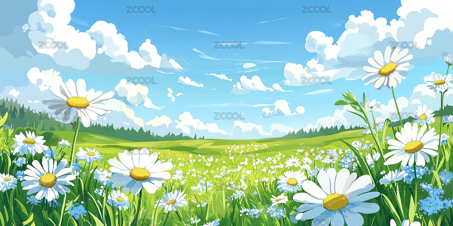 3D卡通春天草地可爱粉色花朵三维自然背景