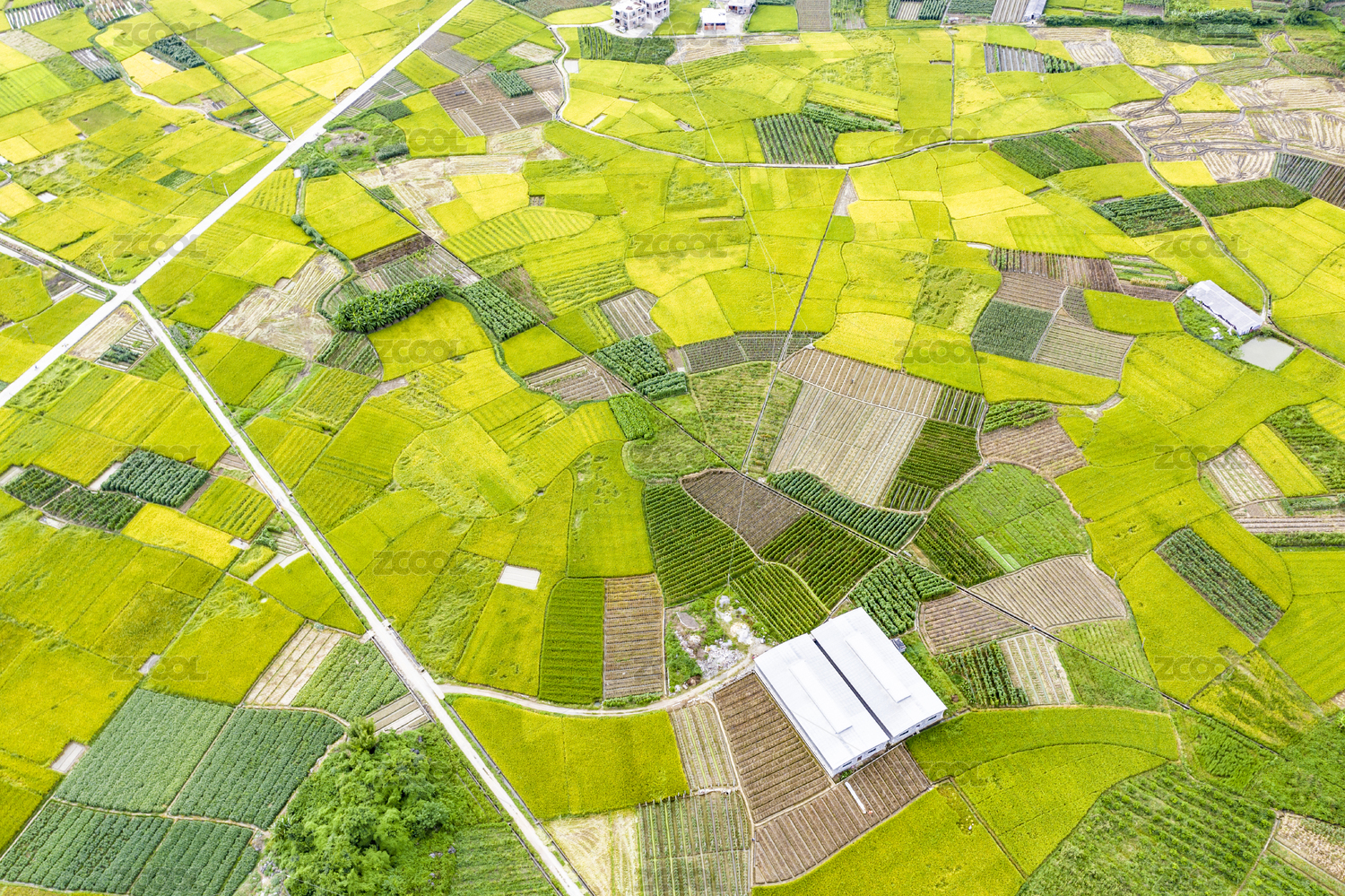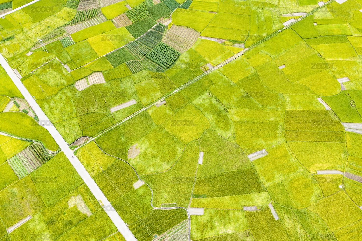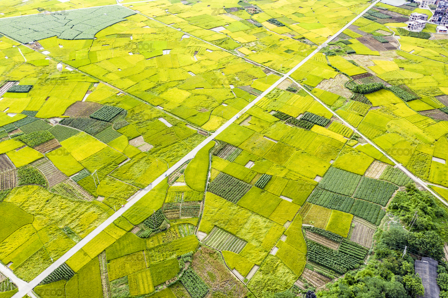 农村绿色稻田自然风光高角度视图