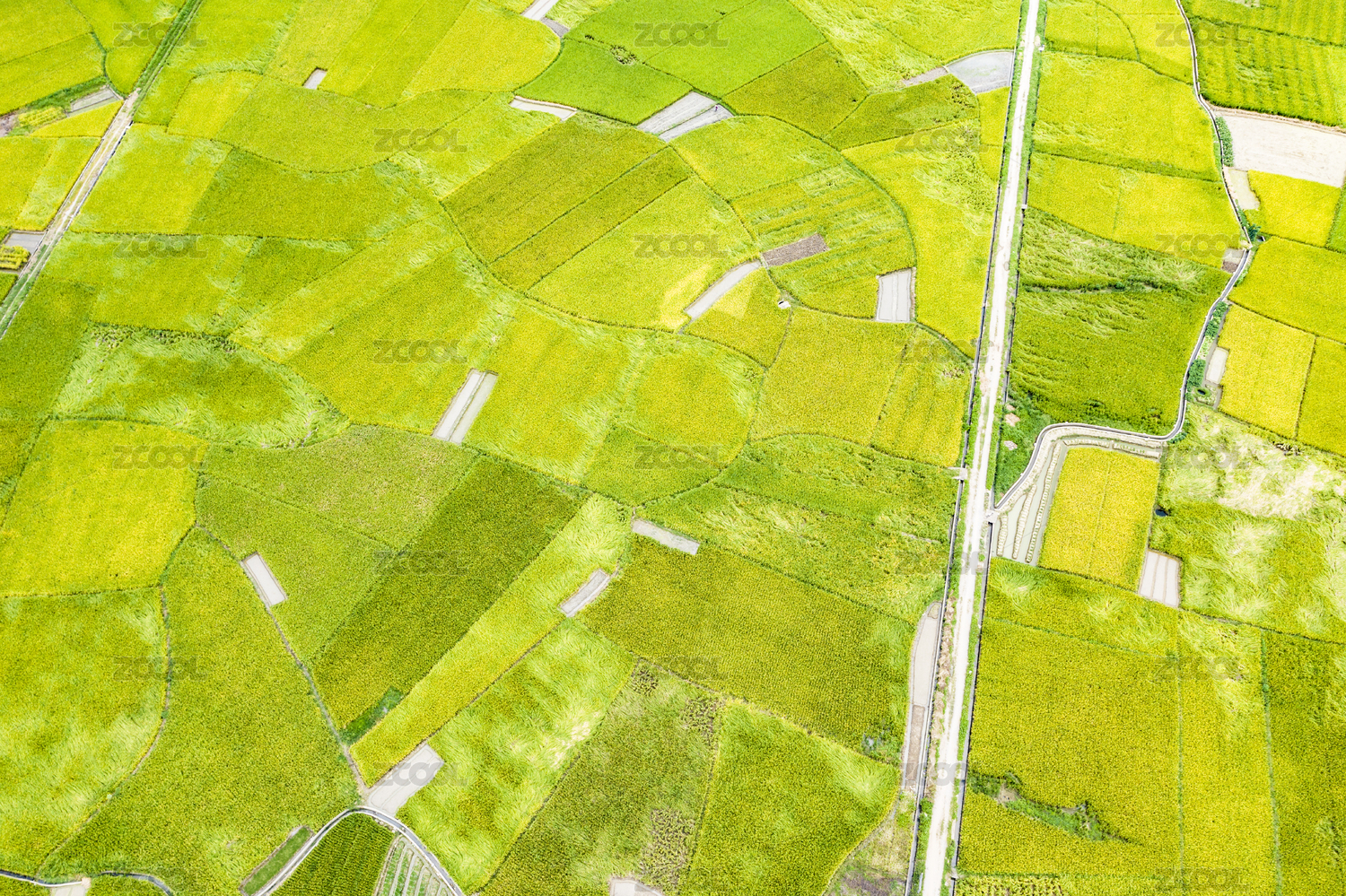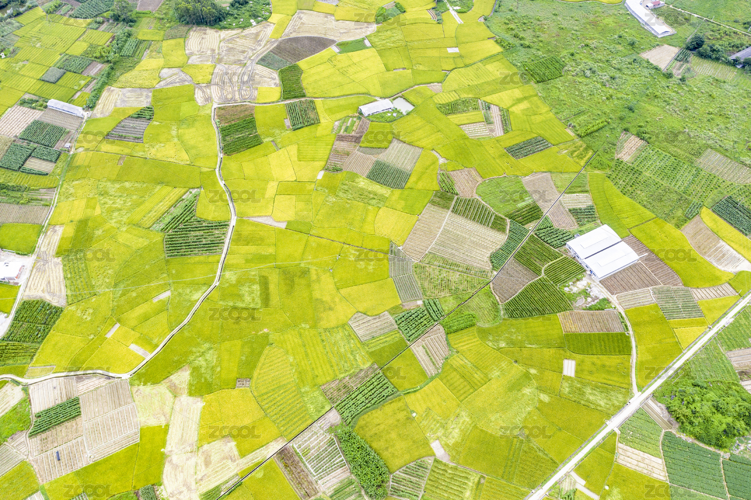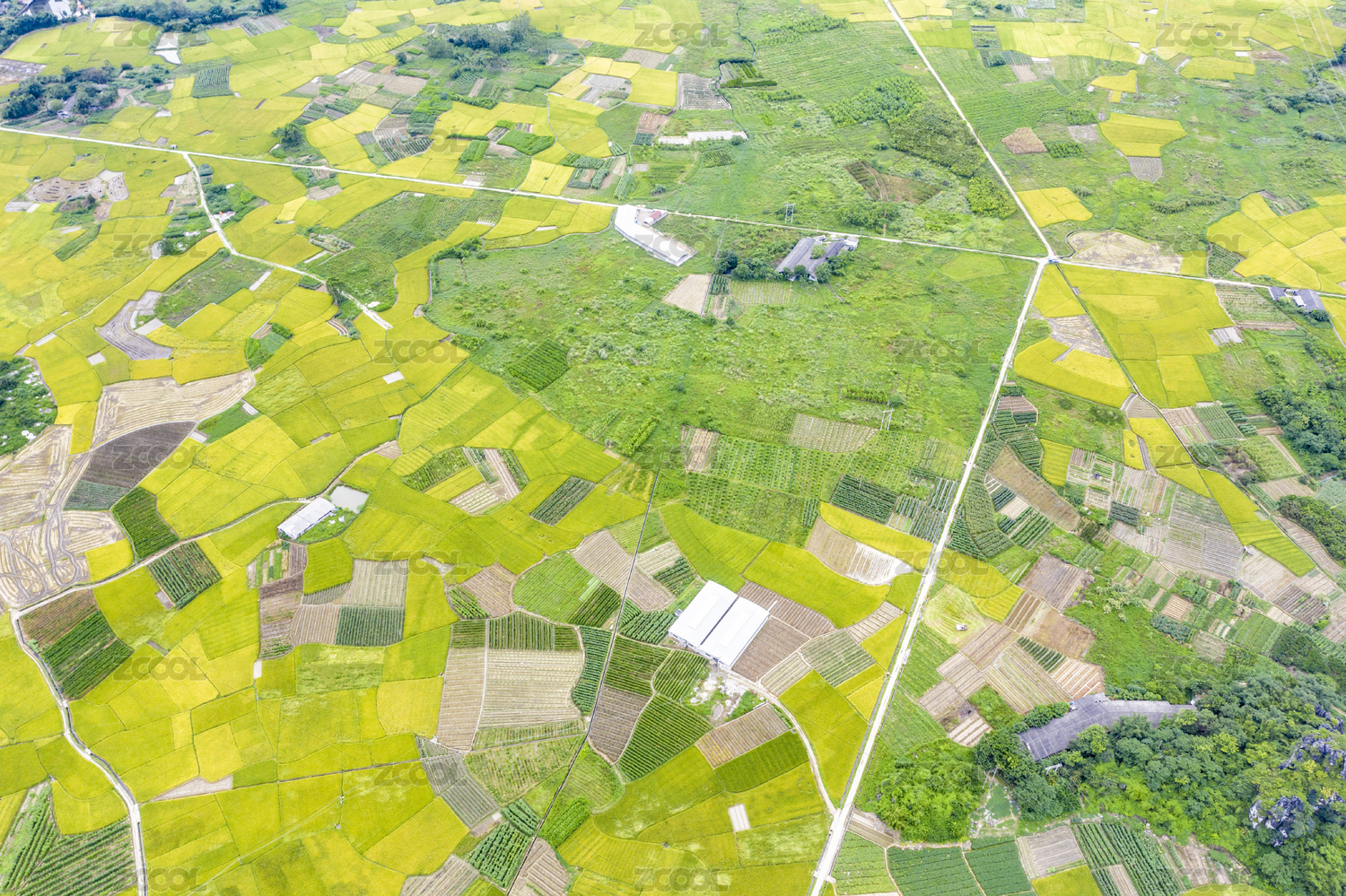 农村绿色稻田自然风光高角度视图
