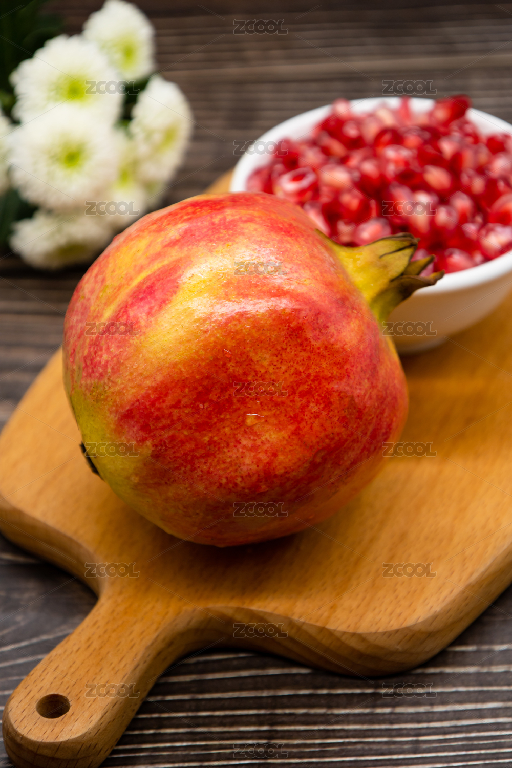 木纹桌面上的石榴