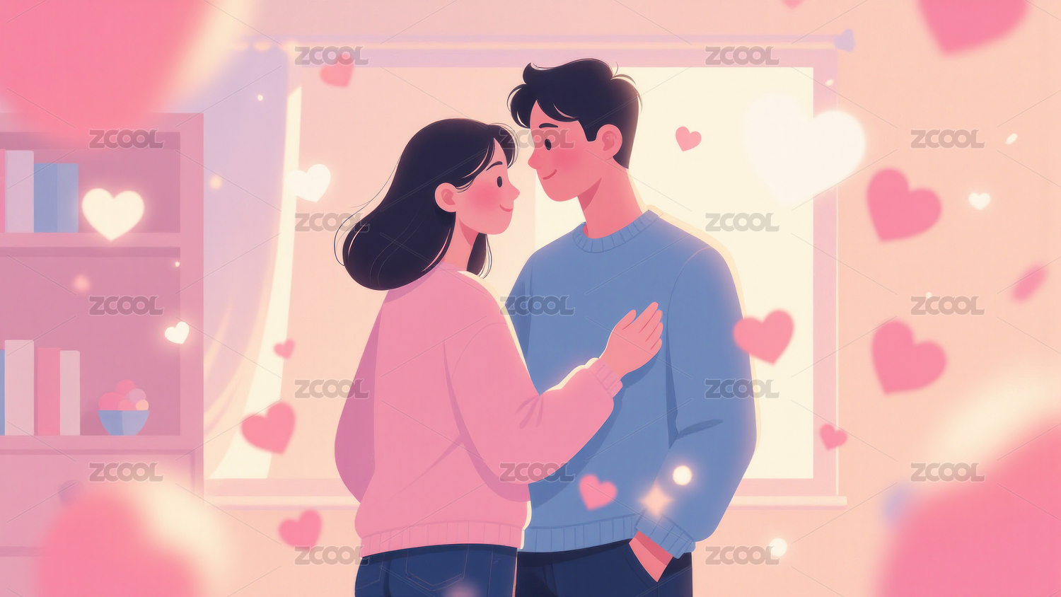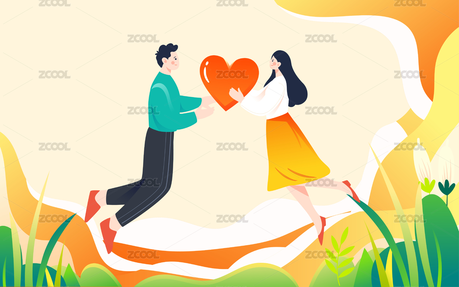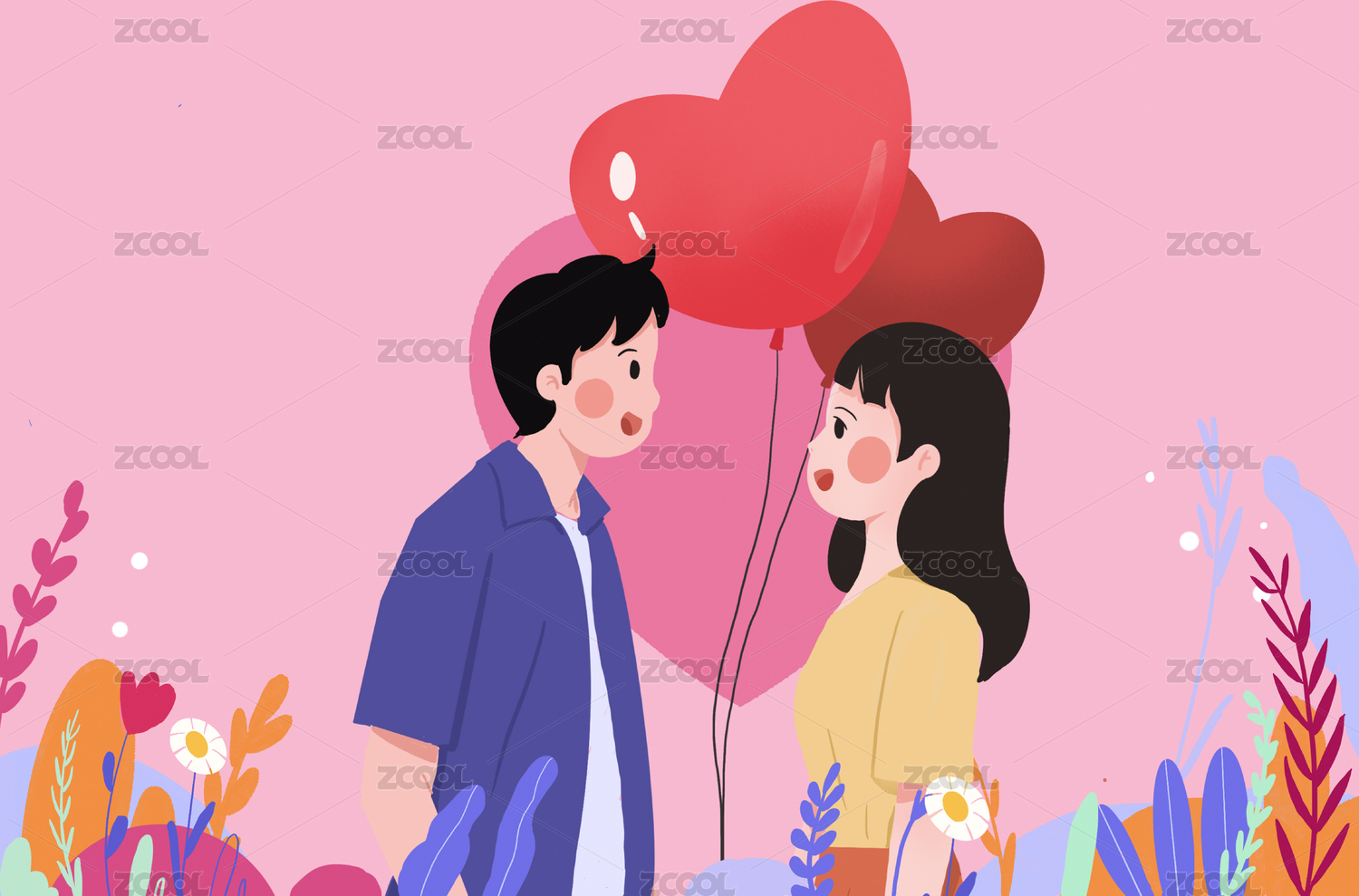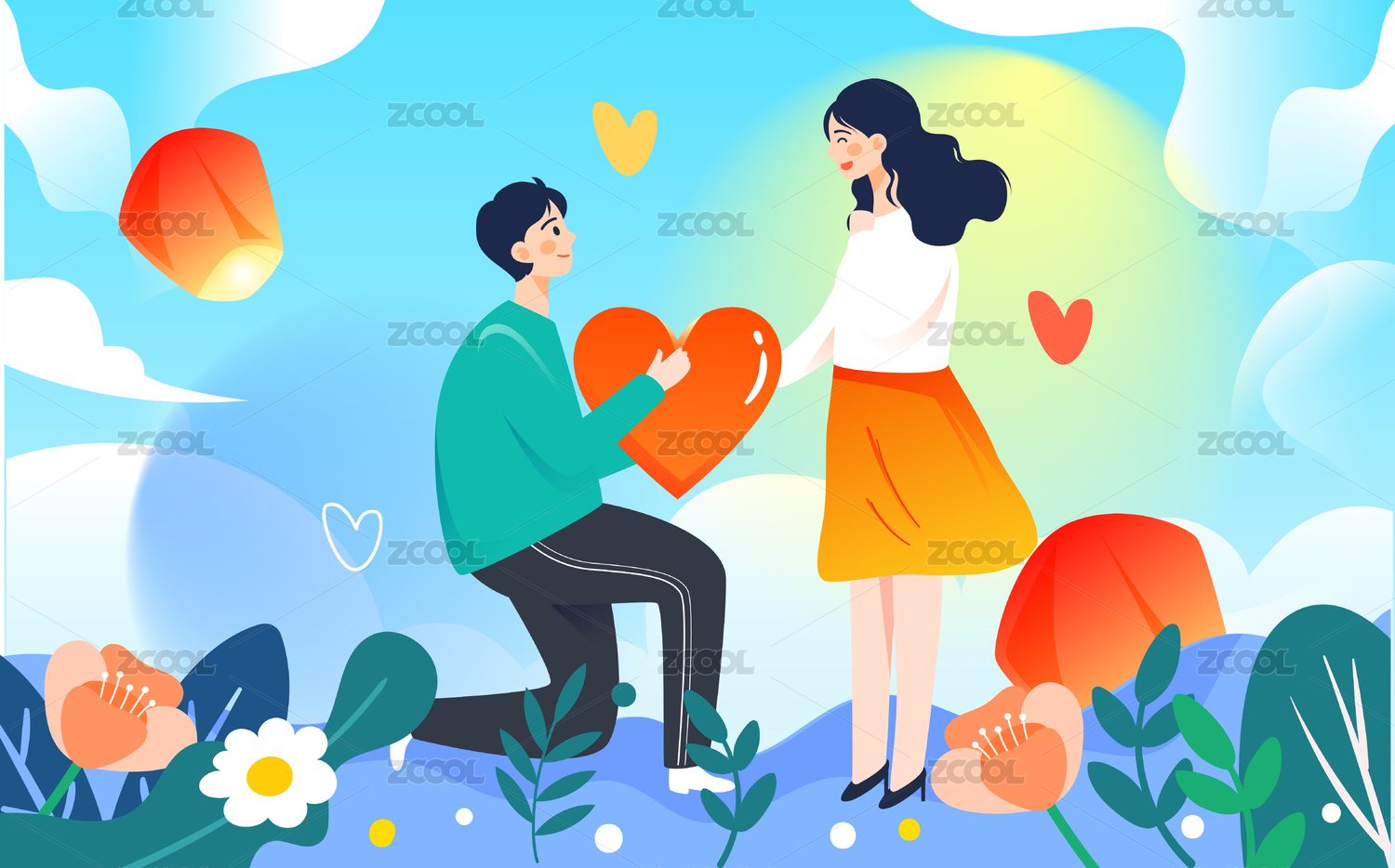 情侣情人节表白日约会恋人浪漫旅行爱情插画
