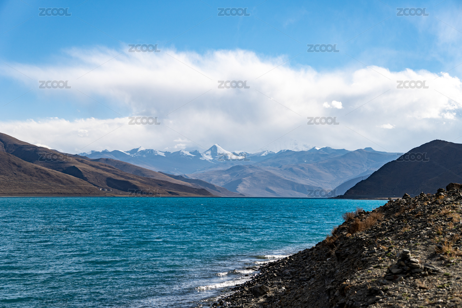 中国山南市贡嘎县羊卓雍措羊湖与雪山