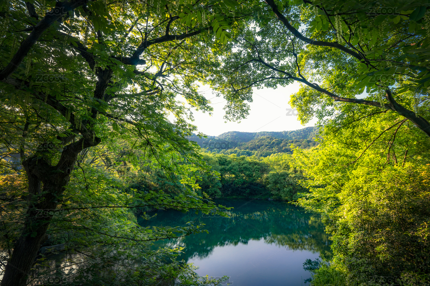 宁波市奉化区溪口雪窦山妙高台翠绿的山林