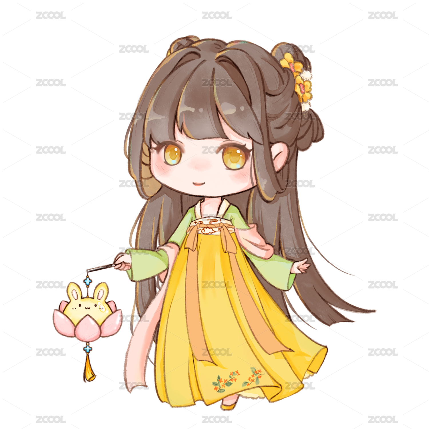 手绘卡通人物中秋节女孩