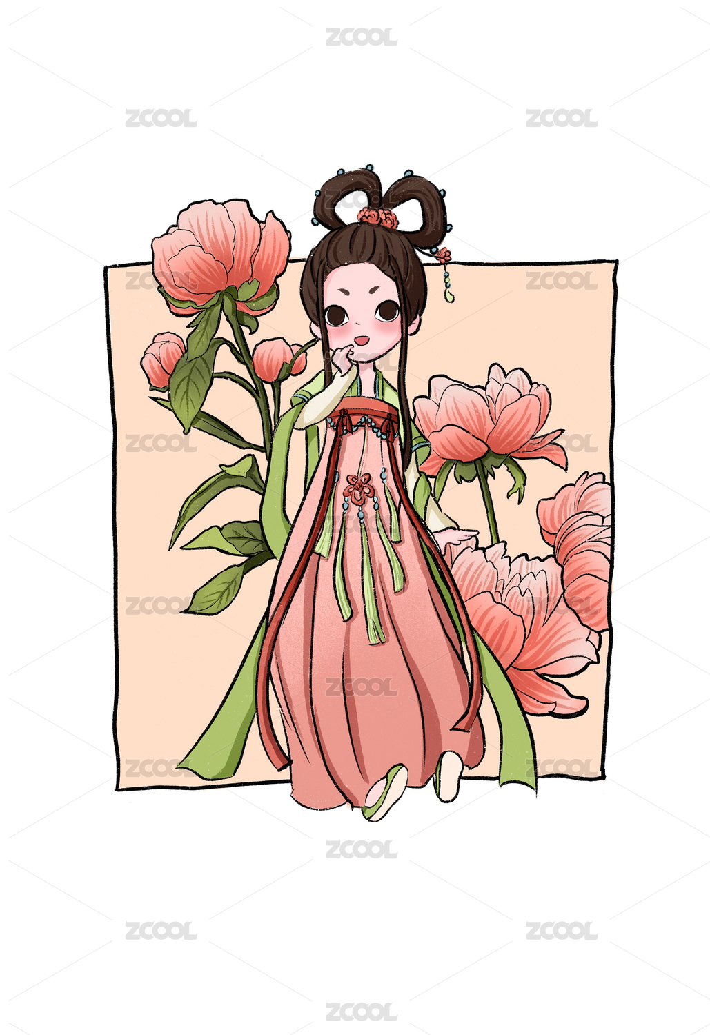一个手拿牡丹的唐汉服女孩