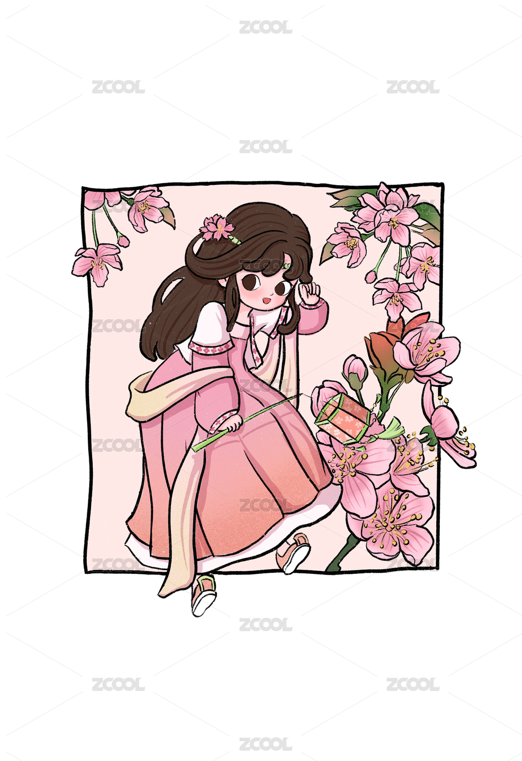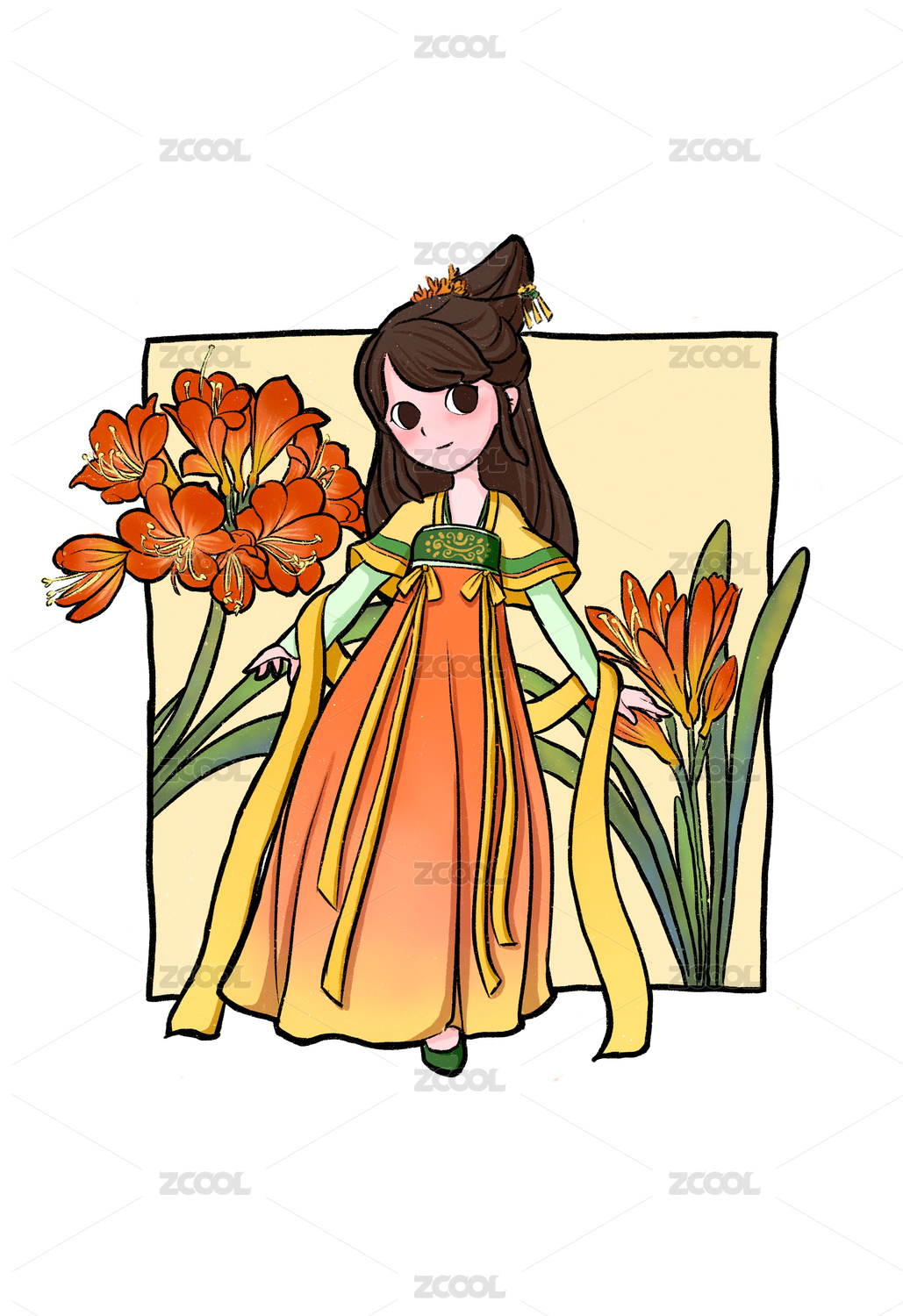 古风手绘汉服女孩古装美人
