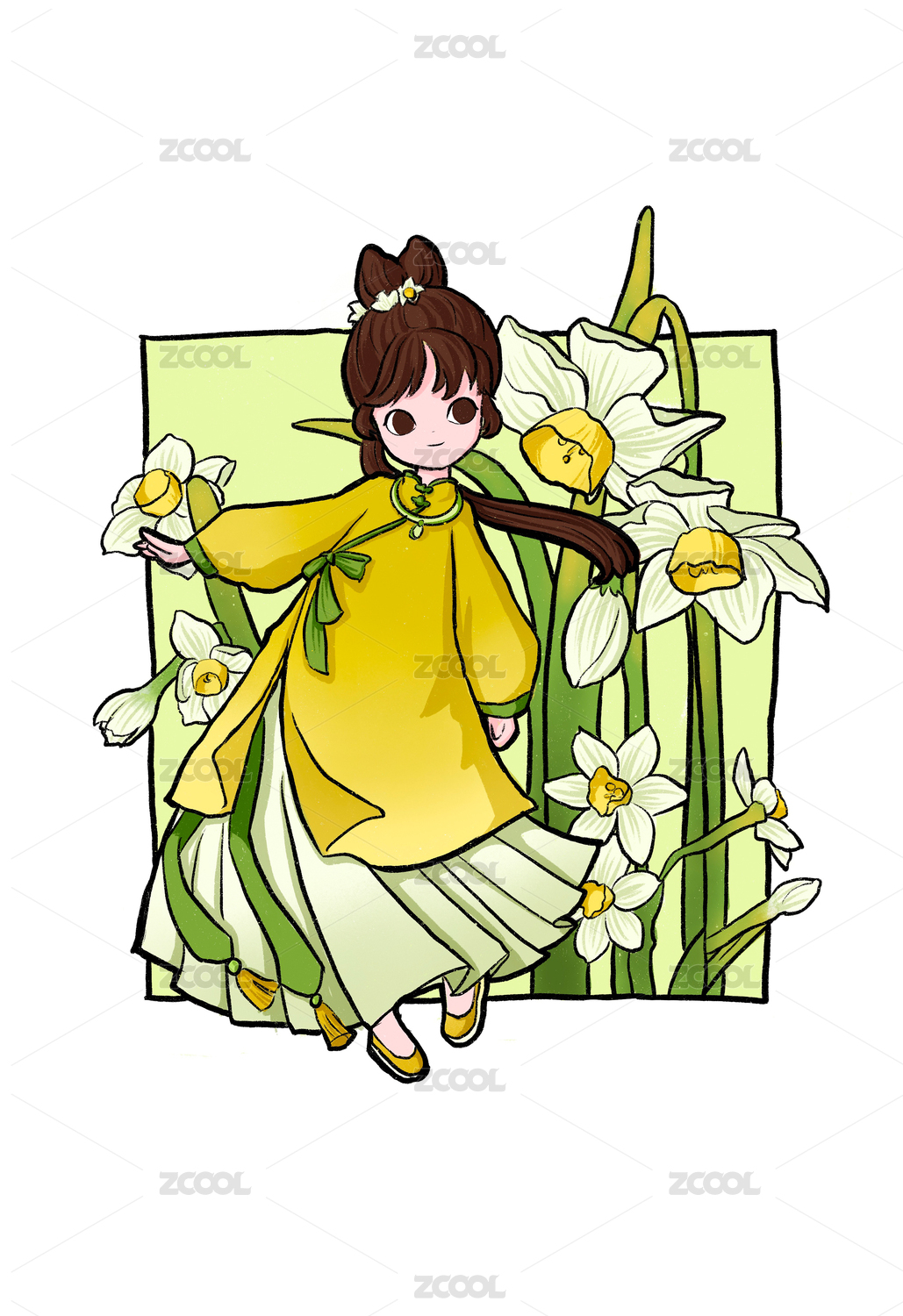 古风手绘二十四节气汉服女孩