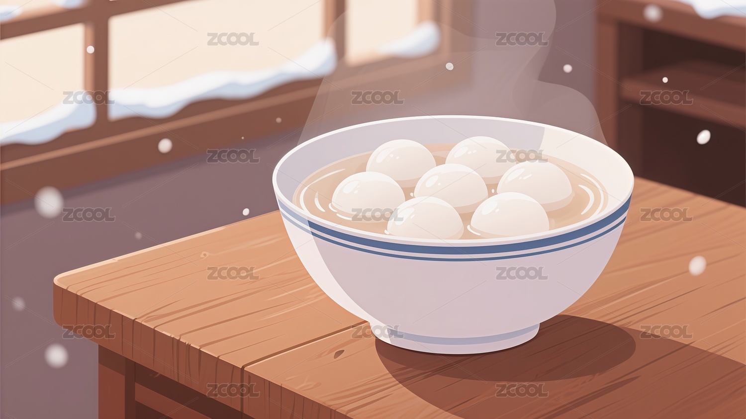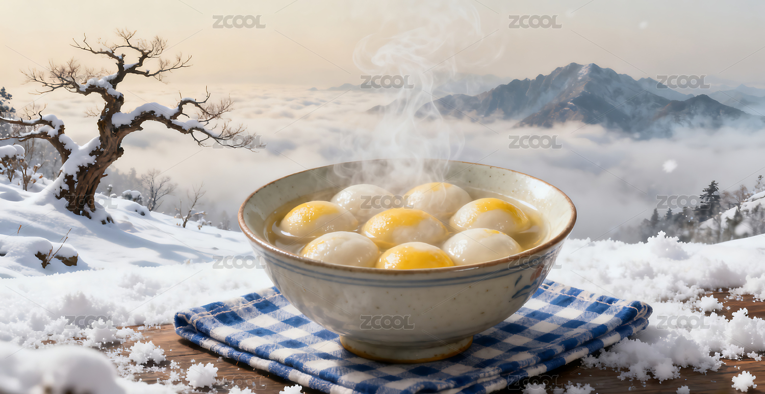 冬至时节吃汤圆的雪地背景